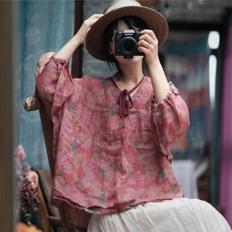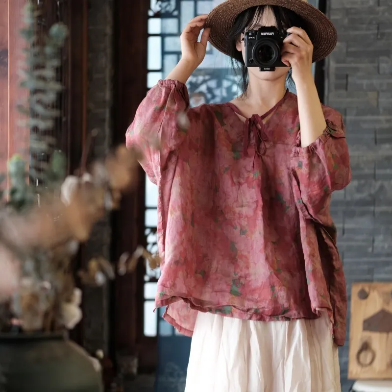 衣都精品- 2023新款復古舊感舒適寬鬆繫帶上衣