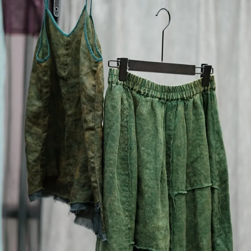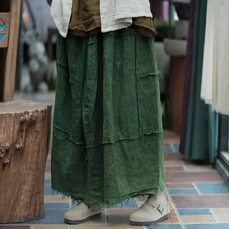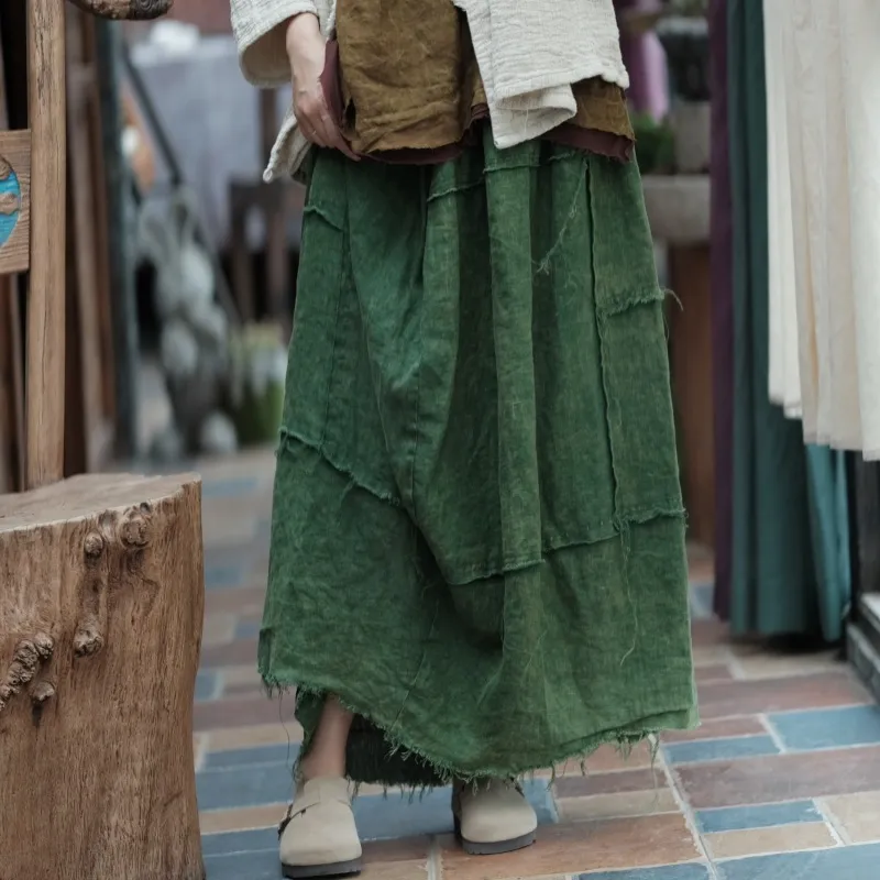 衣都精品- 2023新款深度雪花洗做舊毛邊鬆緊腰半身裙