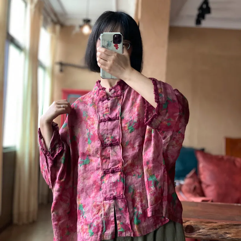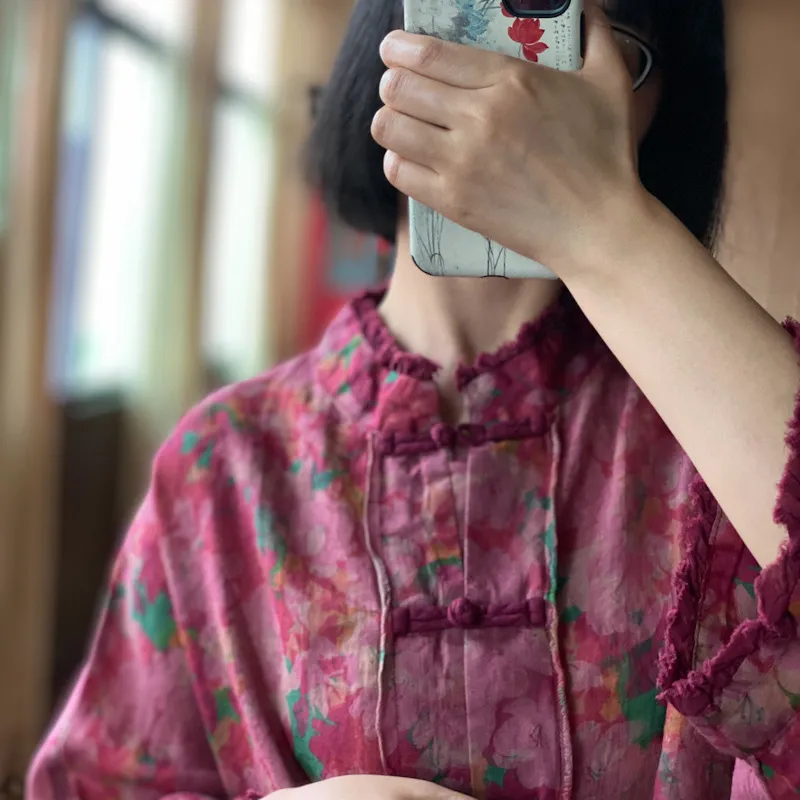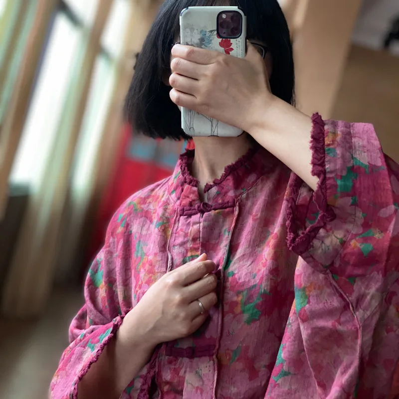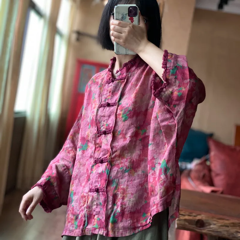 衣都精品- 2023新款復古水洗數碼印花對襟上衣