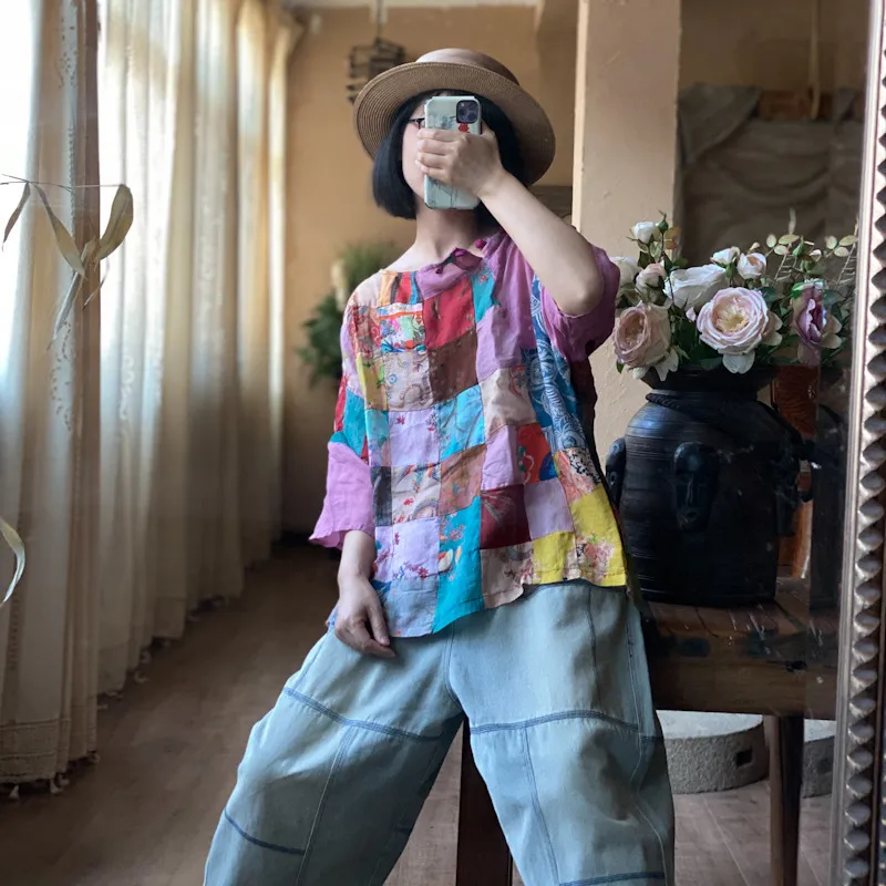 衣都精品- 2023新款復古懷舊拼布手工盤扣上衣