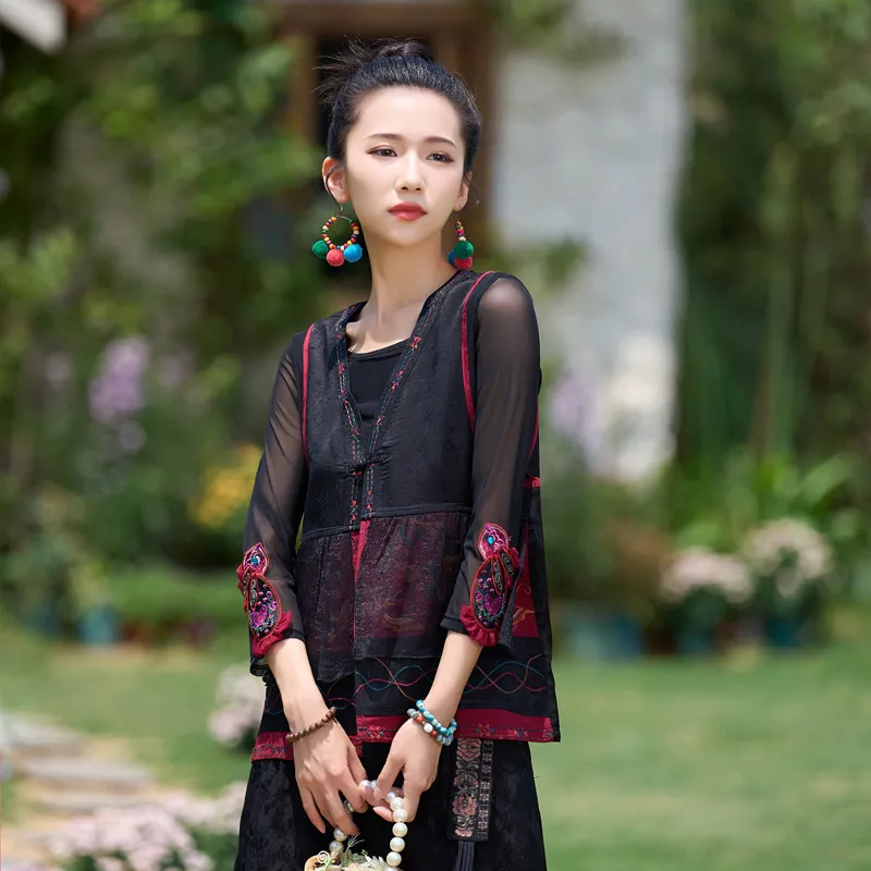 衣都精品- 2023新款民族風荷葉邊拼接背心馬甲外套