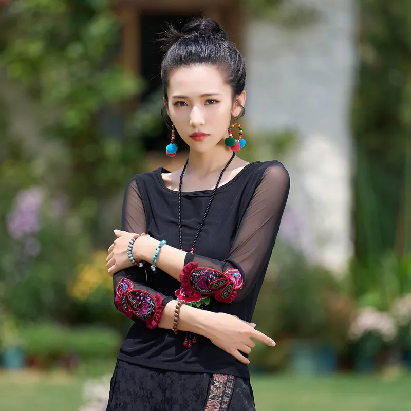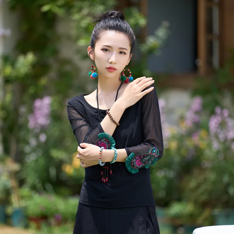 衣都精品- 2023新款民族風圓領網紗刺繡兔子上衣