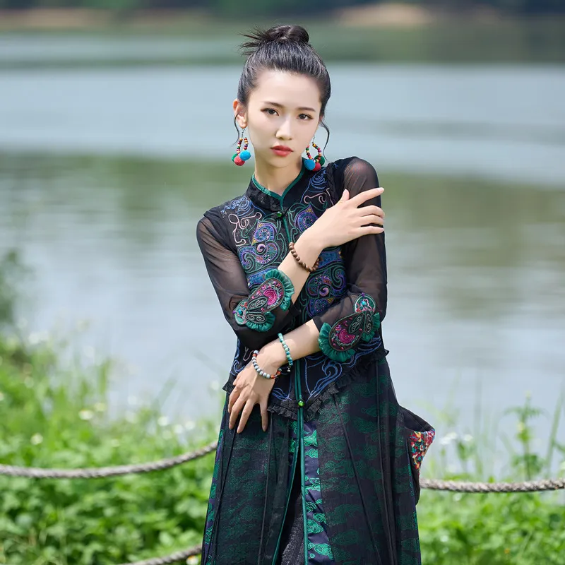 衣都精品- 2023新款民族風重工刺繡馬甲緞面連衣裙
