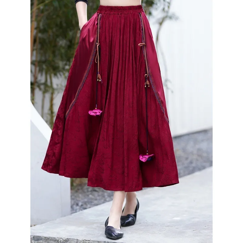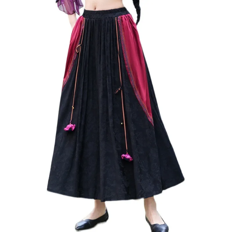 衣都精品- 2023新款民族風繡花飄帶鬆緊腰半身裙