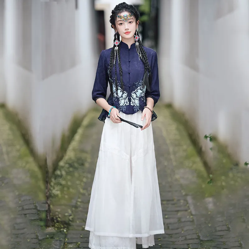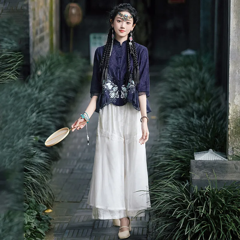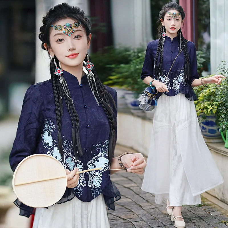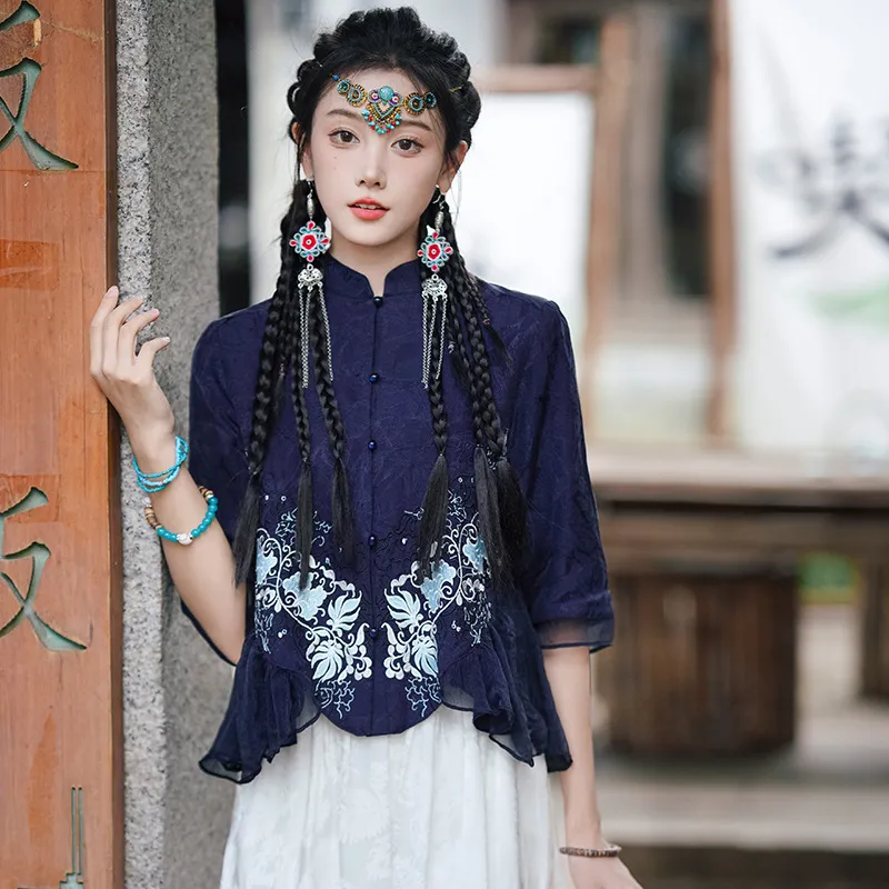 衣都精品- 2023新款中式復古改良唐裝盤扣刺繡上衣