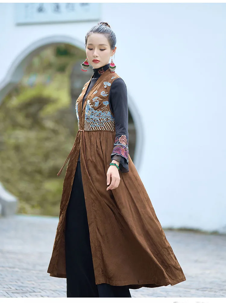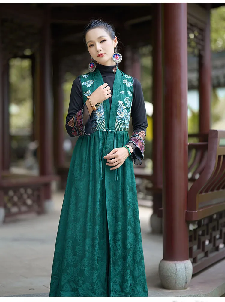 衣都精品- 2023新款重工刺繡中式復古背心外套連身裙