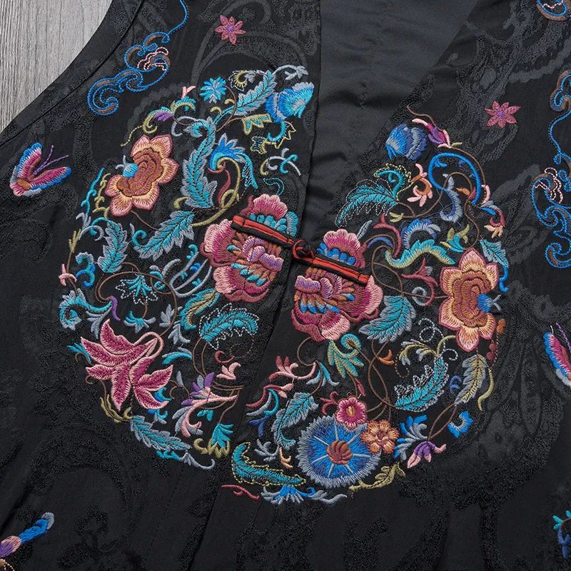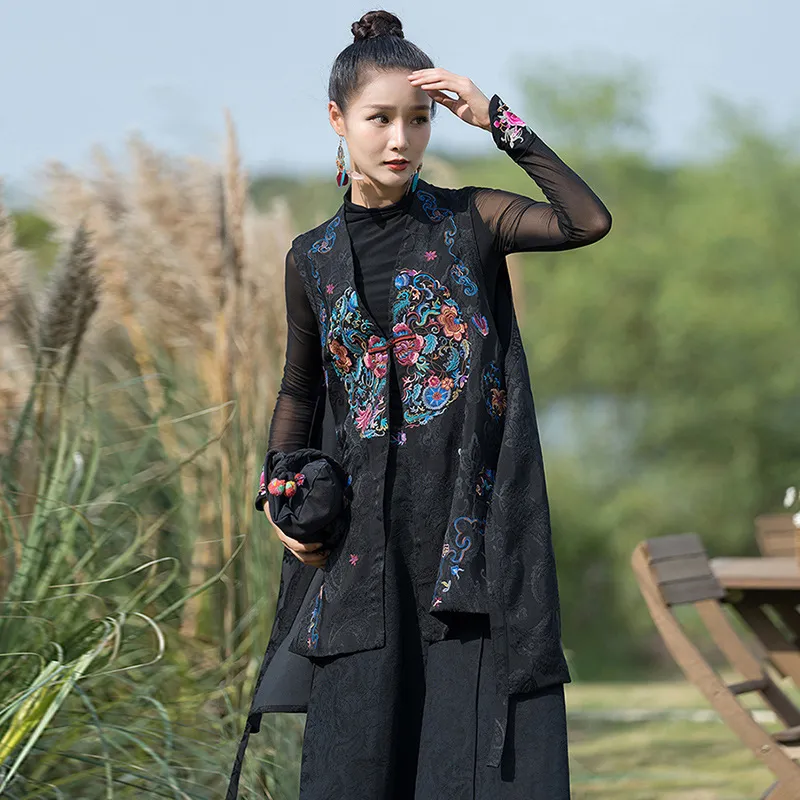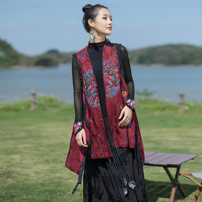 衣都精品- 2023新款民族風刺繡盤扣坎肩無袖外套