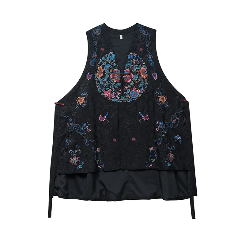 衣都精品- 2023新款民族風寬鬆提花刺繡無袖背心