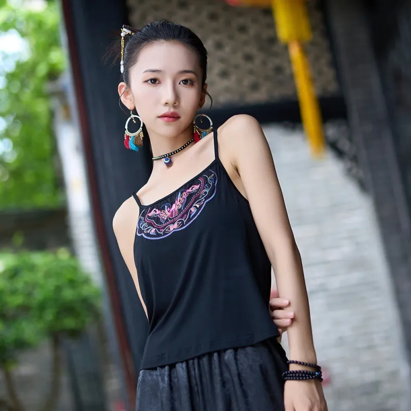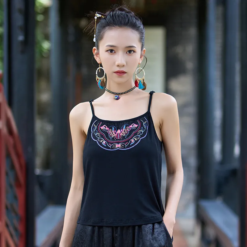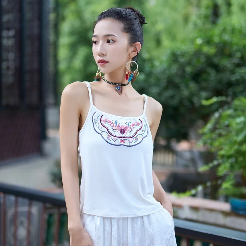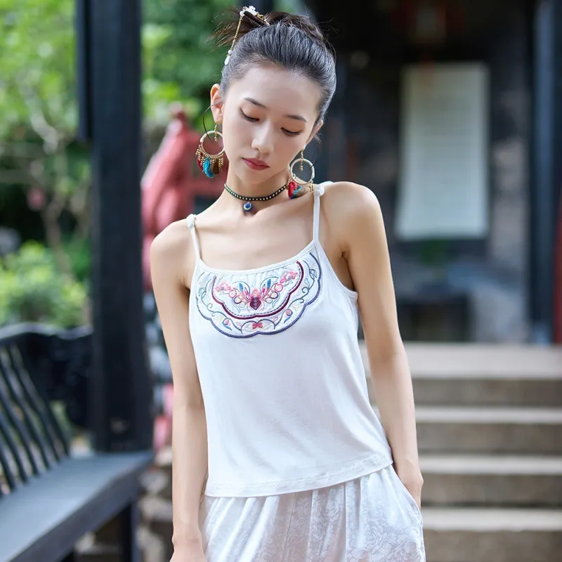 衣都精品- 2023新款重工刺繡莫代爾吊帶修身內搭背心