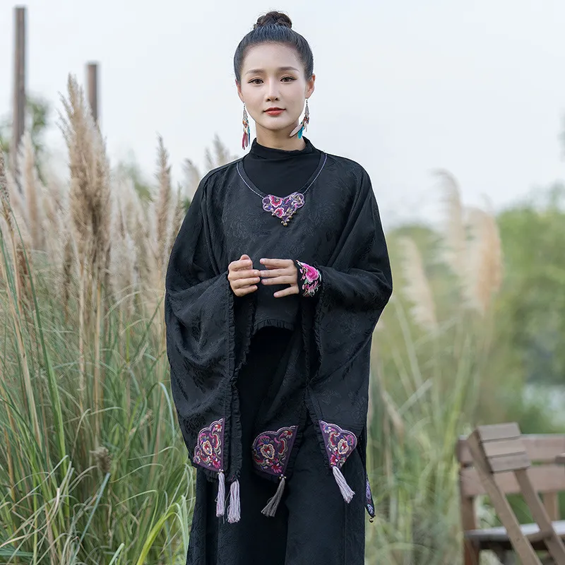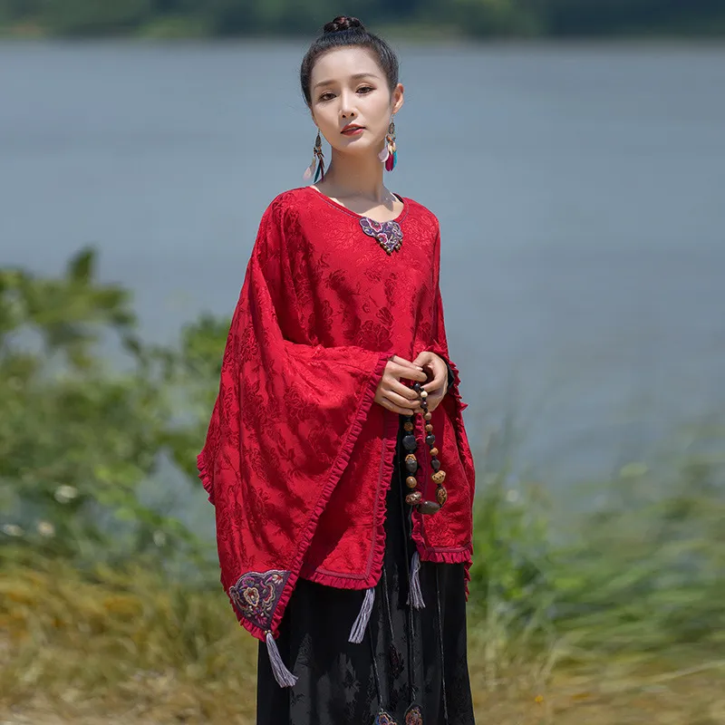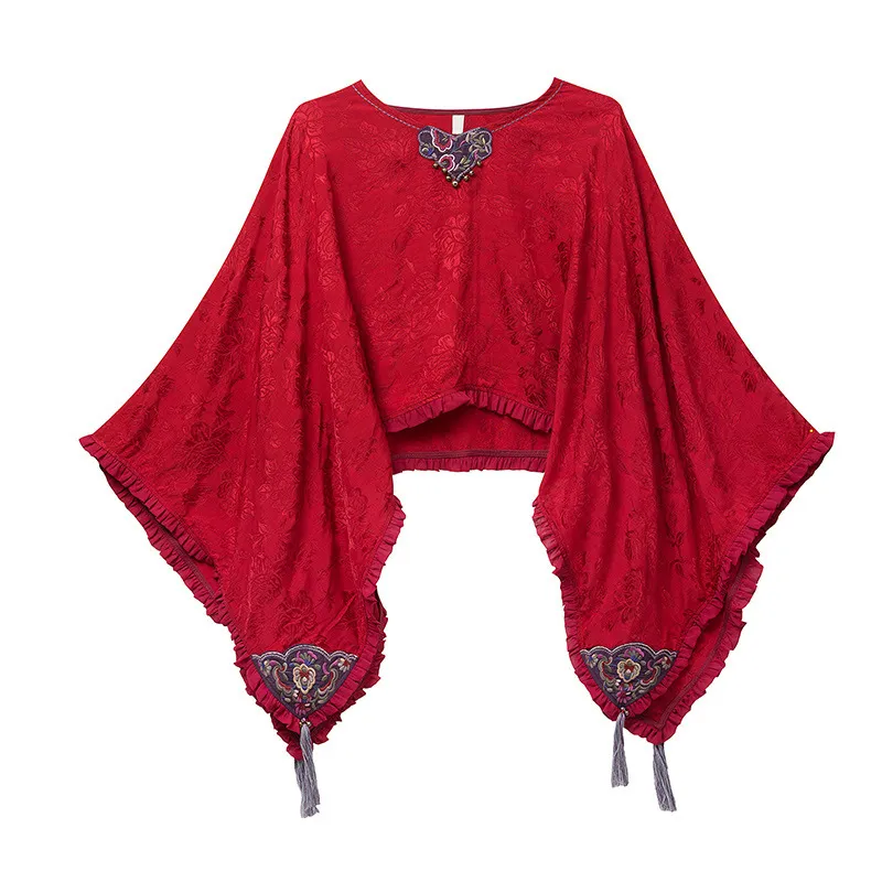 衣都精品- 2023新款民族風圓領提花蝙蝠衫披肩外套