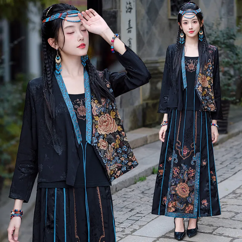 衣都精品- 2023新款重工刺繡中式復古背心外套連身裙