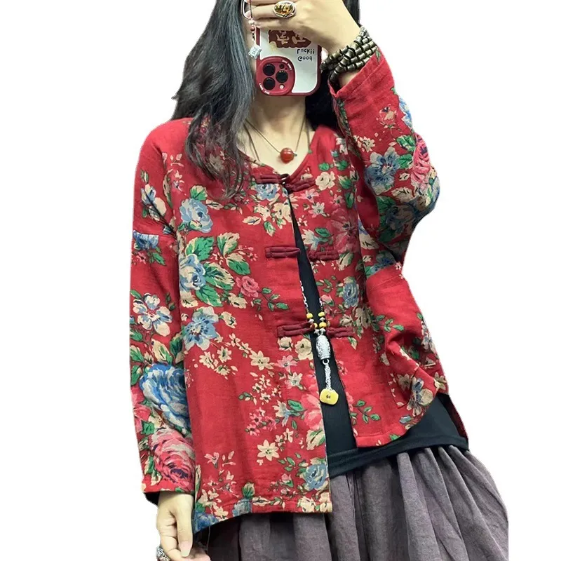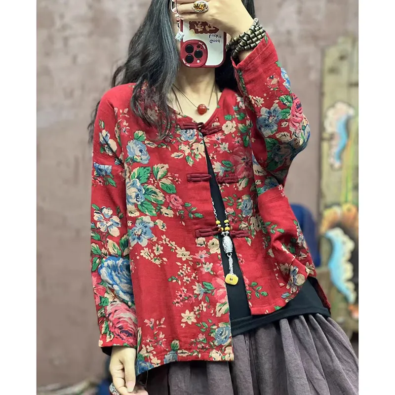 衣都精品- 2023新款復古東北大花單排盤扣拼接長袖外套