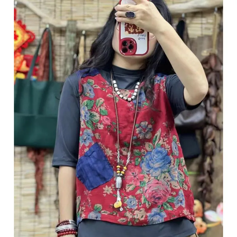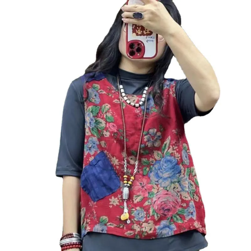 衣都精品- 2023新款復古東北大花圓領套頭無袖背心