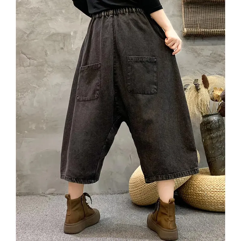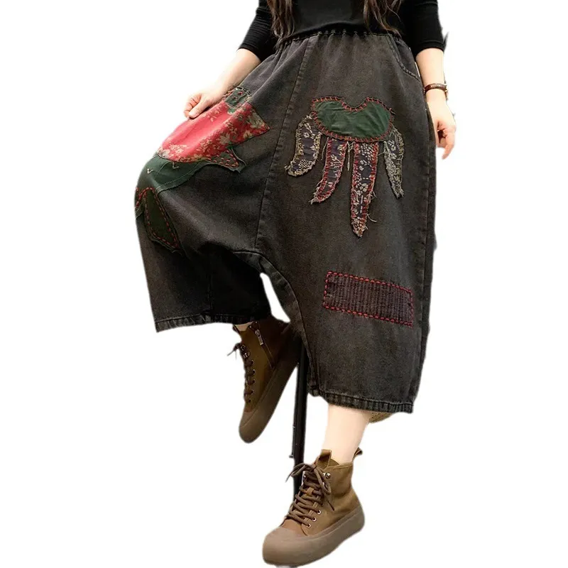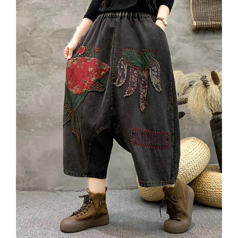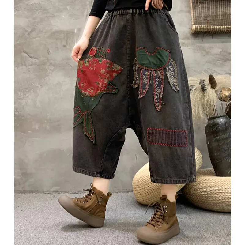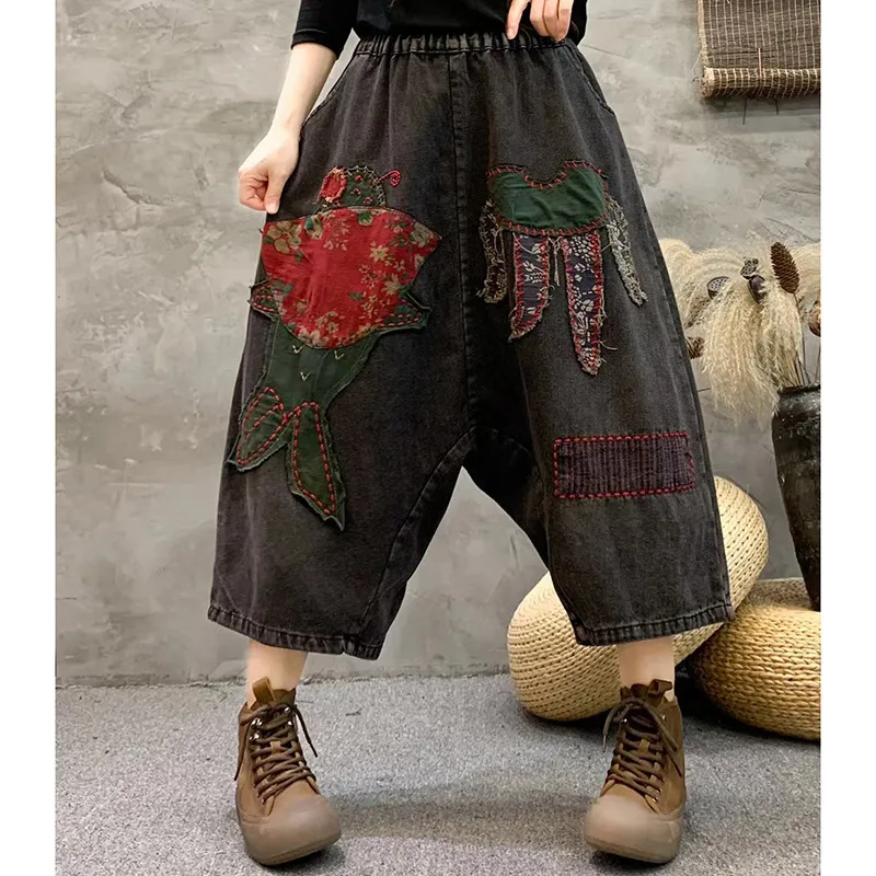 衣都精品- 2023新款貼布刺繡鬆緊腰大碼顯瘦哈倫褲