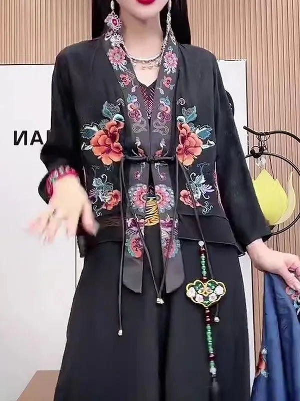 衣都精品- 2023新款民族風緞面提花重工刺繡短外套