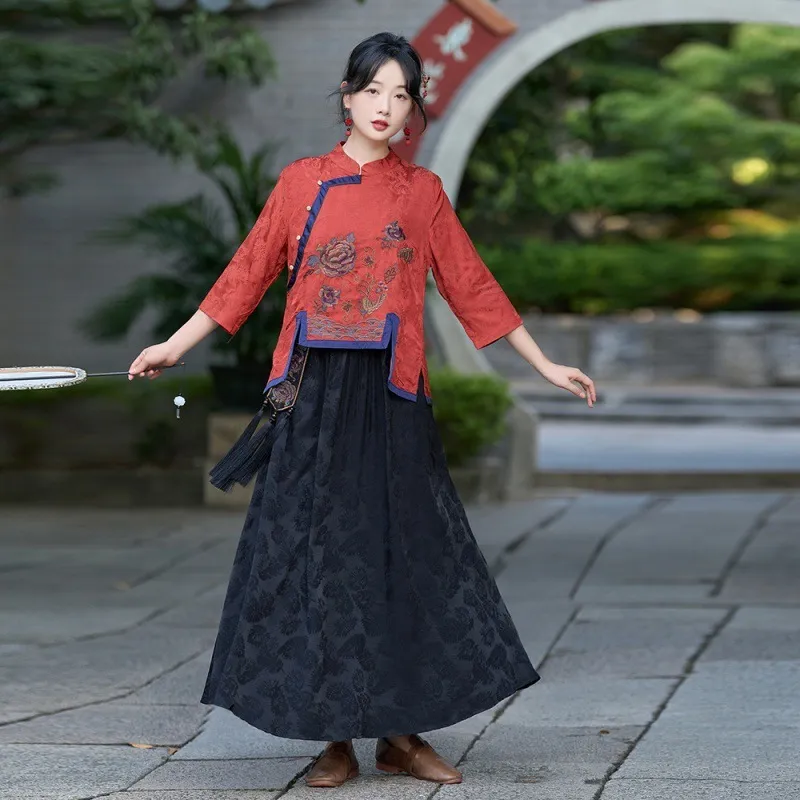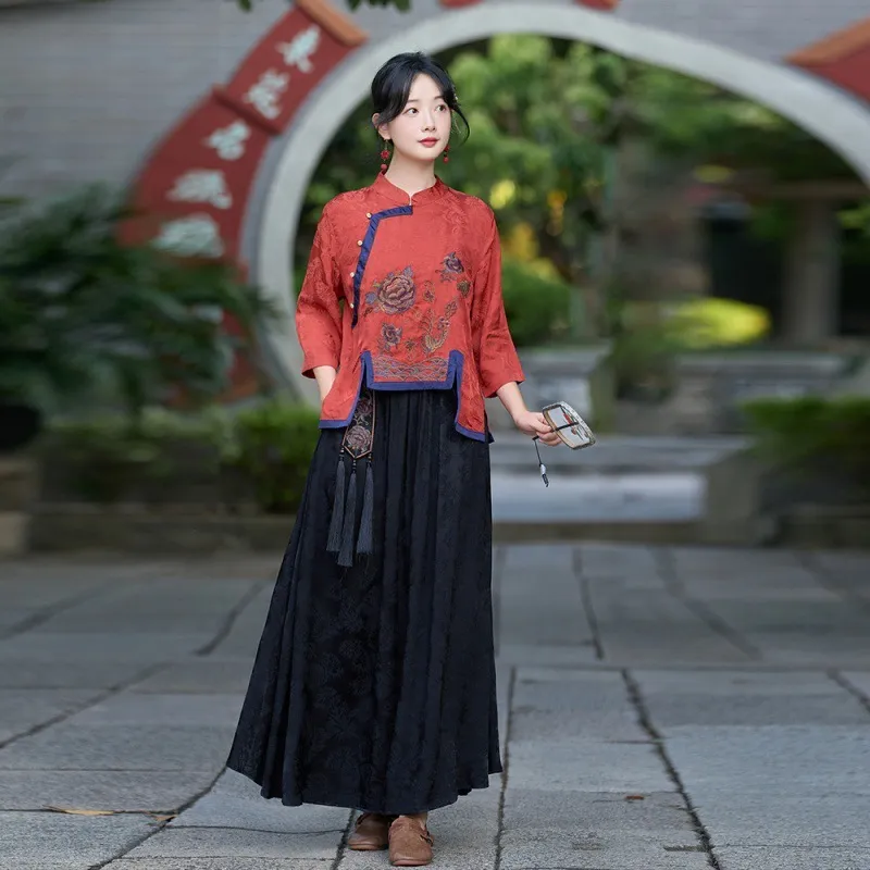 衣都精品- 2023新款民族風緞面提花重工刺繡短外套