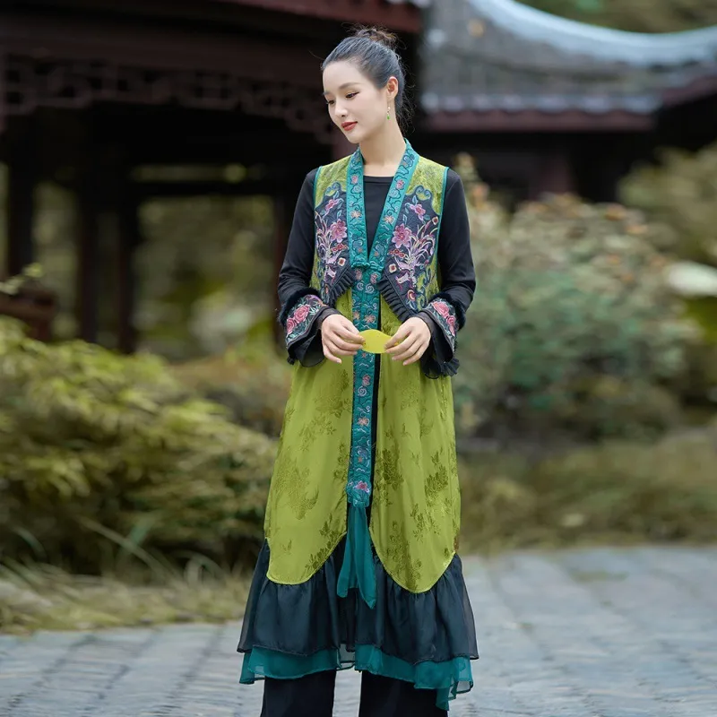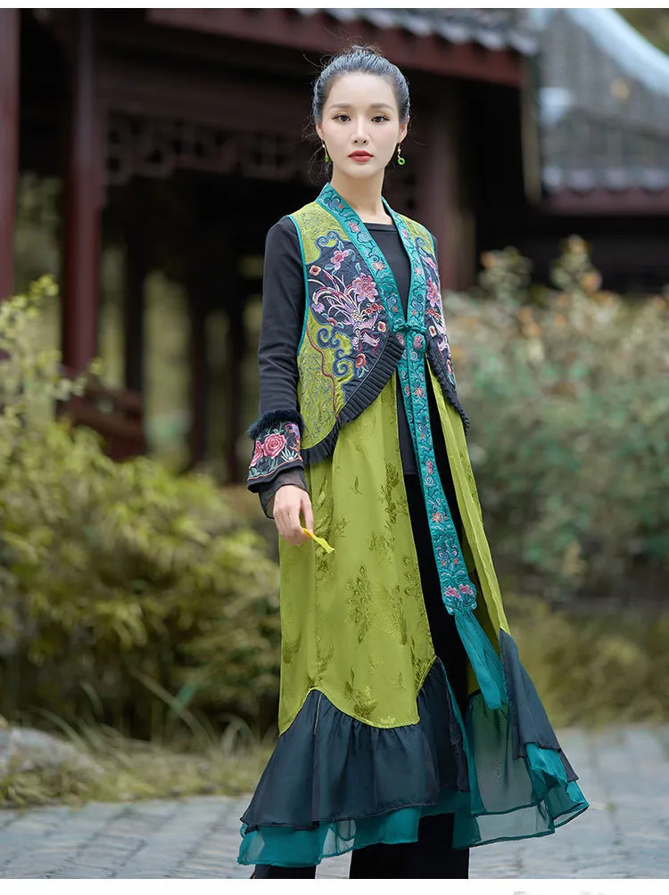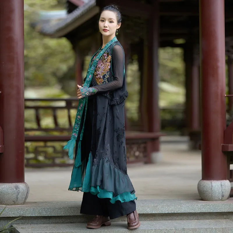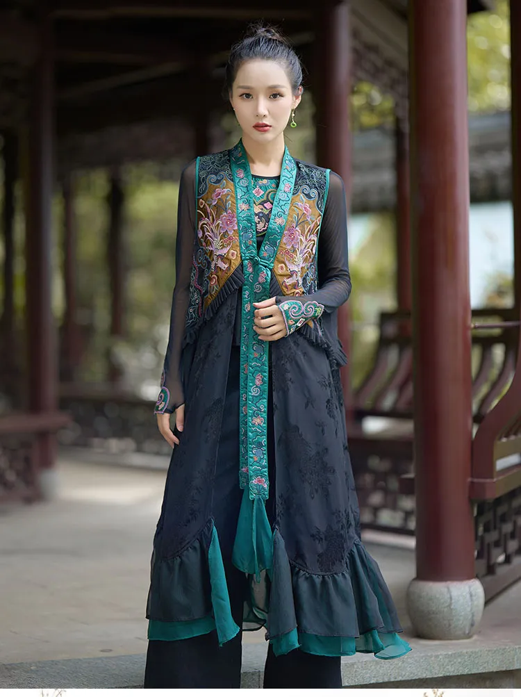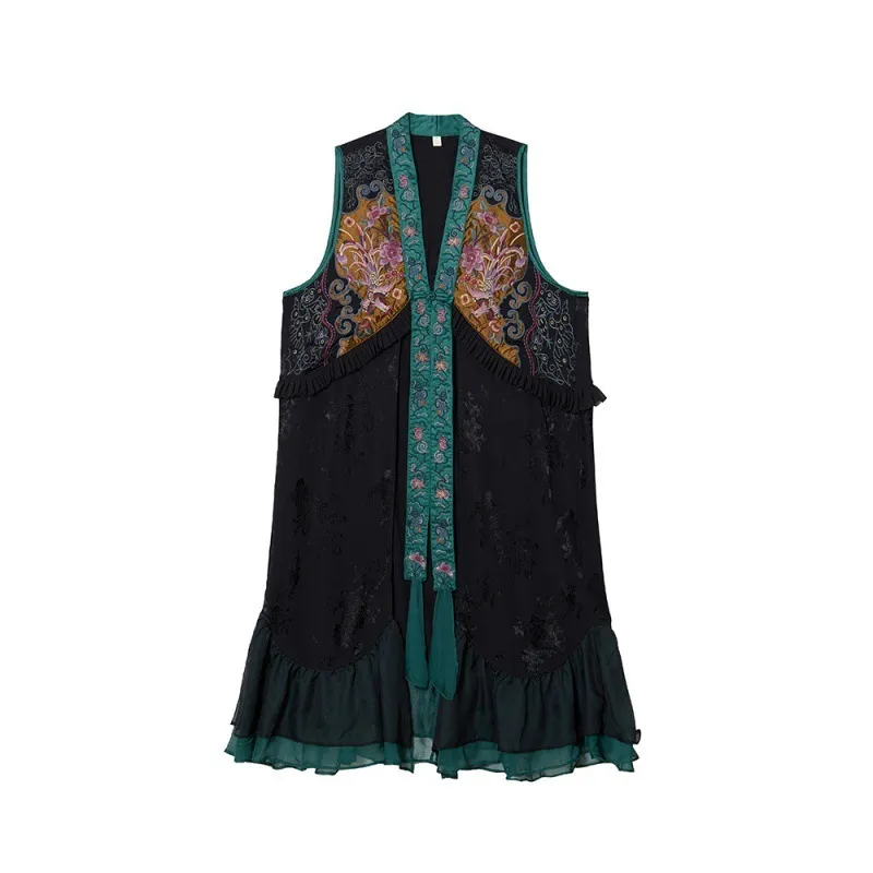 衣都精品- 2023新款民族風重工刺繡緞面馬甲連衣裙