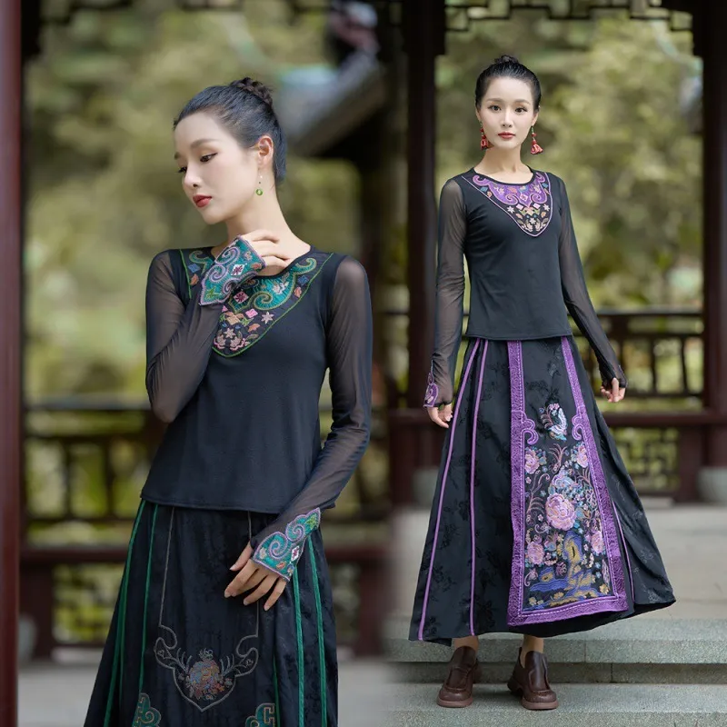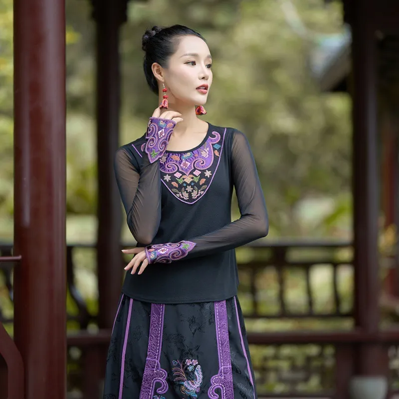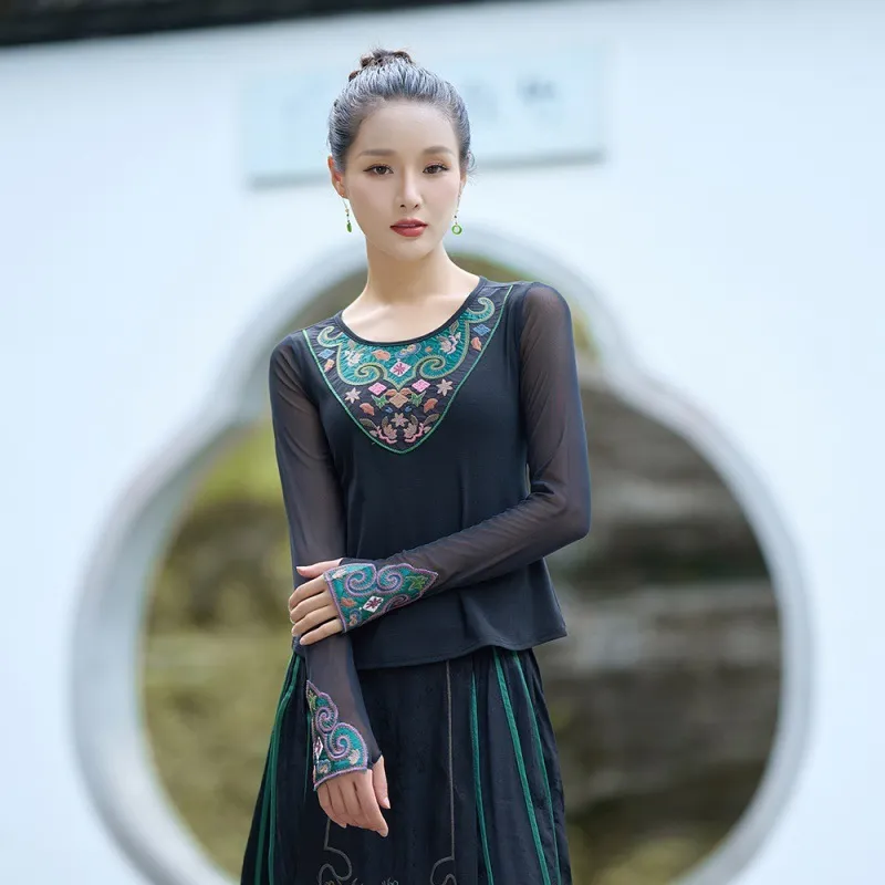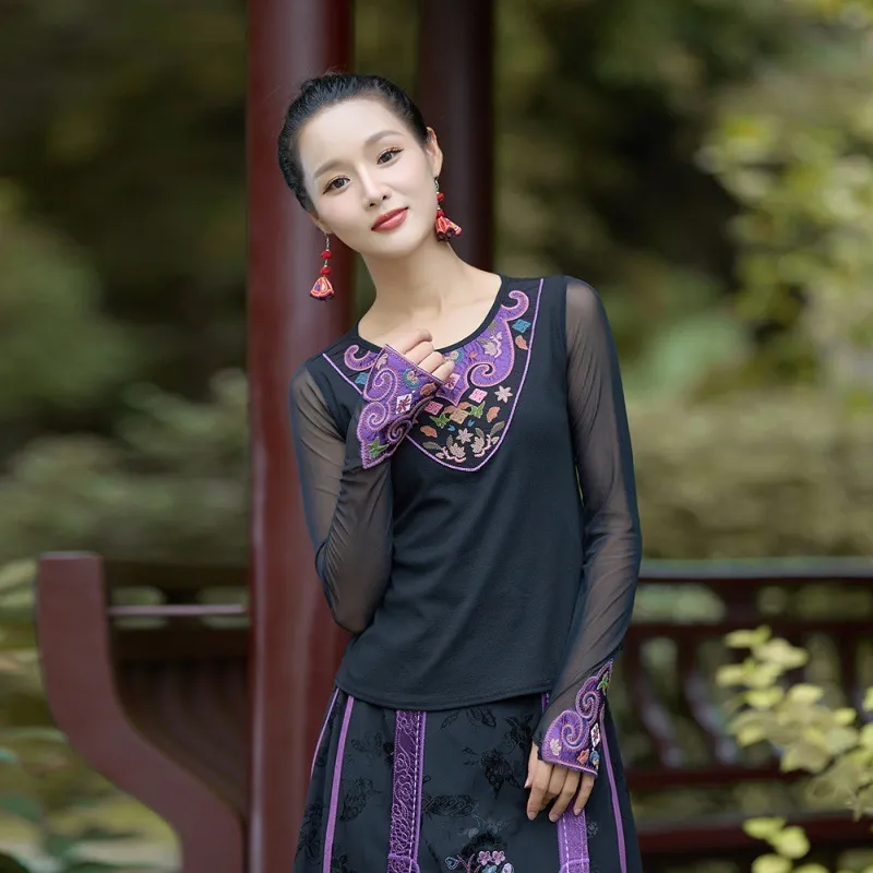 衣都精品- 2023新款民族風刺繡大碼百搭修身顯瘦上衣
