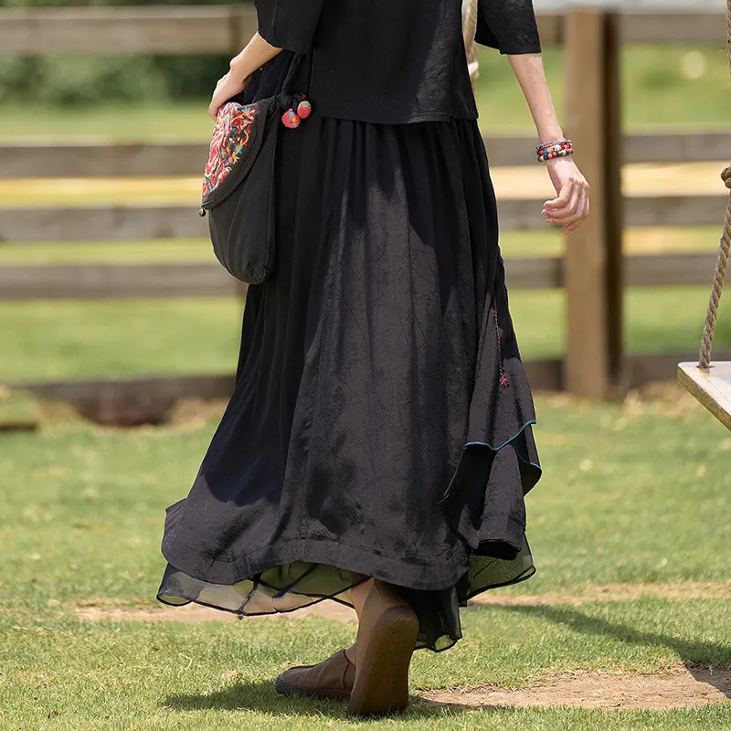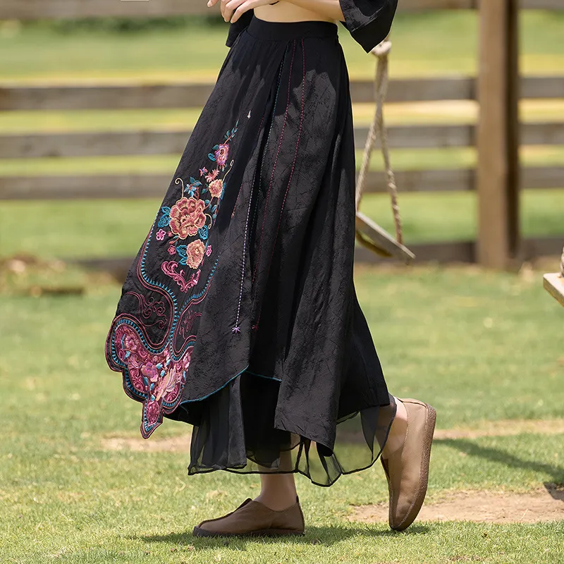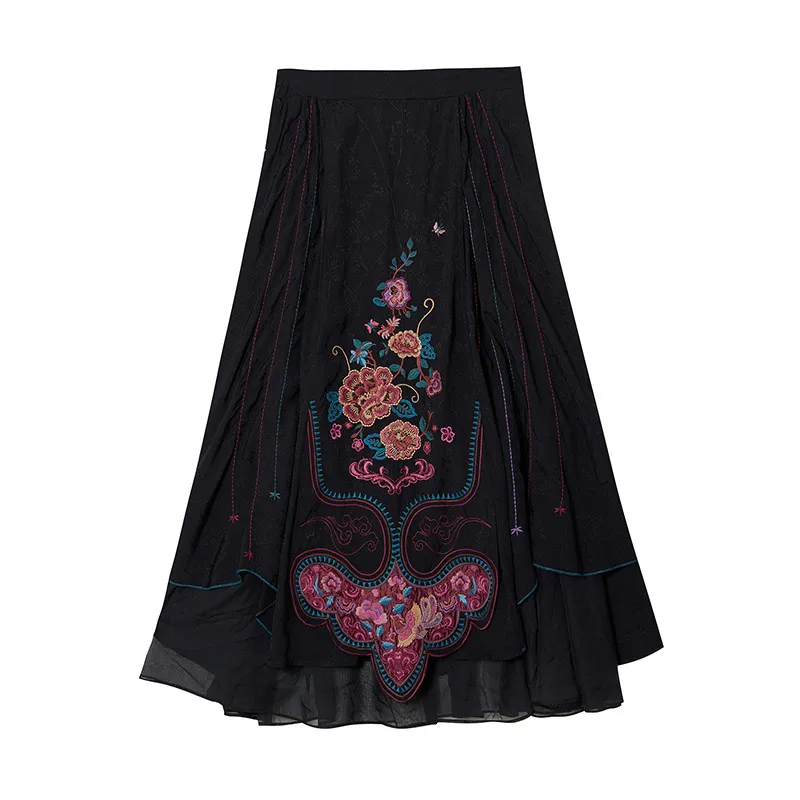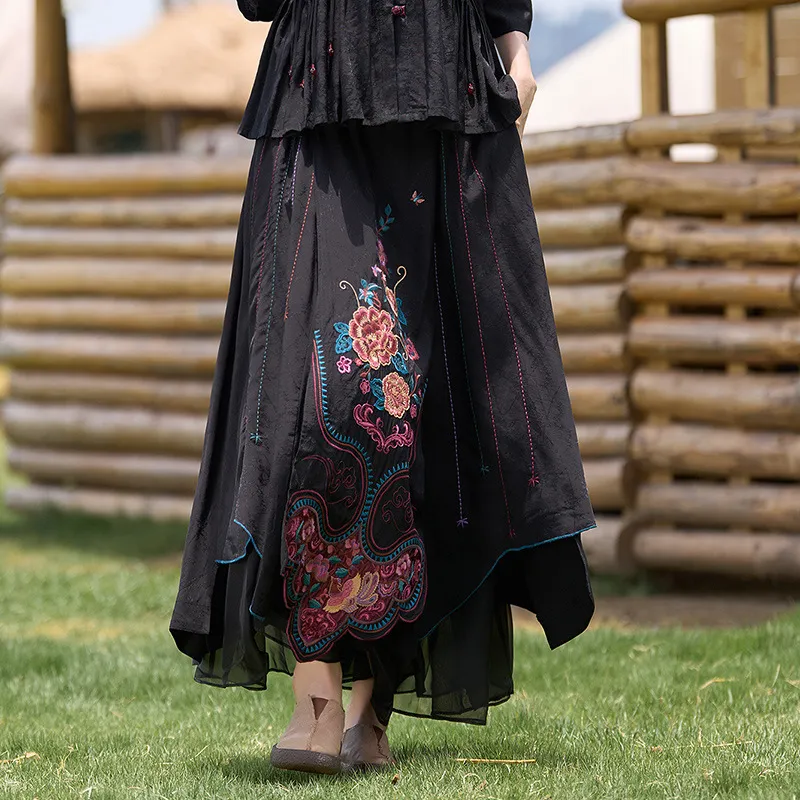 衣都精品- 2023新款民族風刺繡荷葉邊多層半身裙