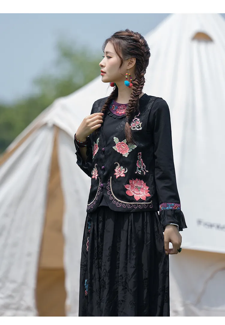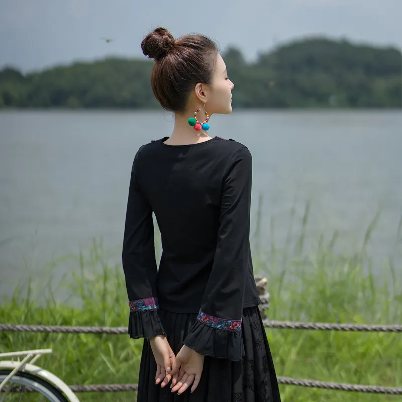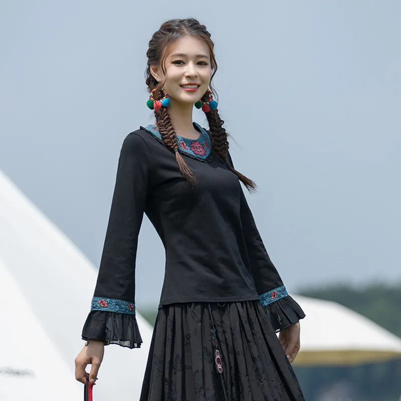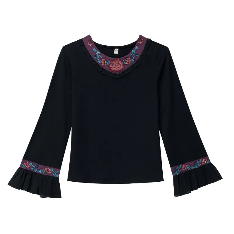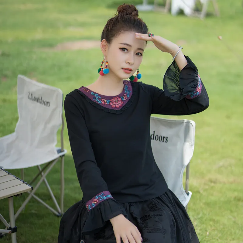 衣都精品- 2023新款民族風刺繡大碼百搭修身顯瘦上衣