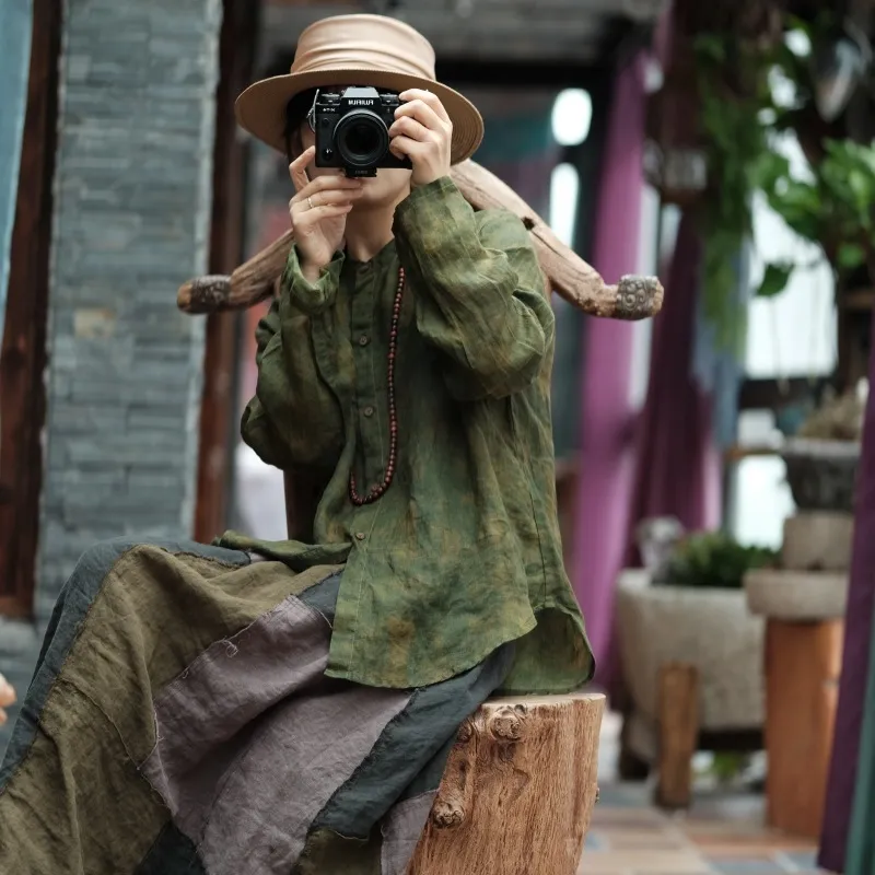 衣都精品- 2023新款復古純苧麻寬鬆文藝百搭上衣