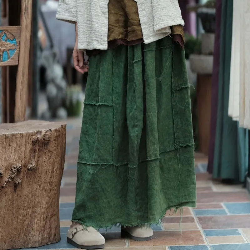 衣都精品- 2023新款復古雪花洗做舊毛邊鬆緊腰半身裙