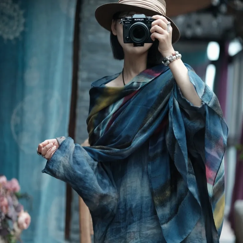衣都精品- 2023新款復古條紋防曬圍巾披肩