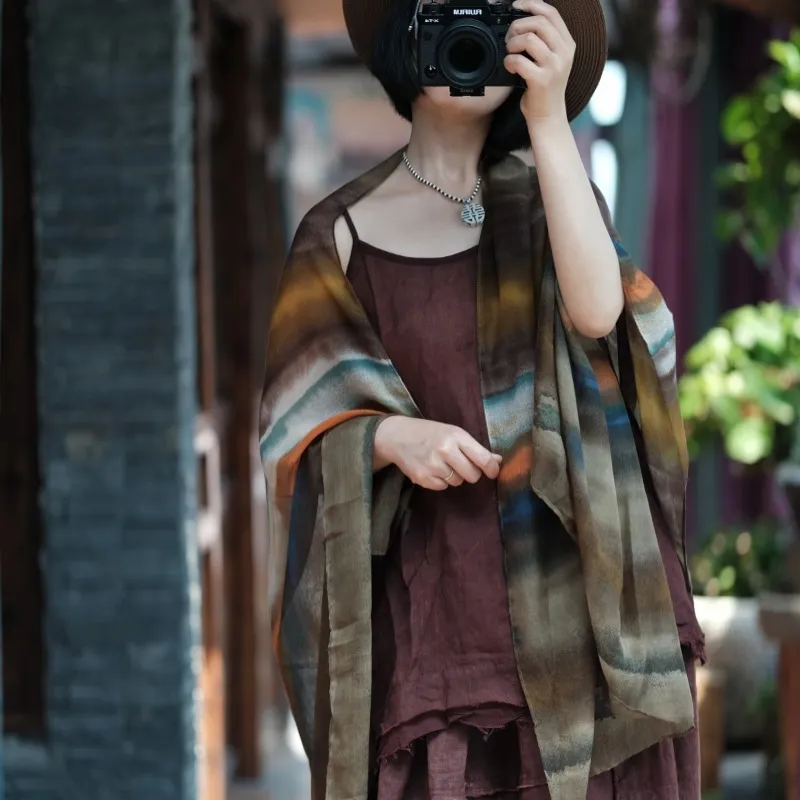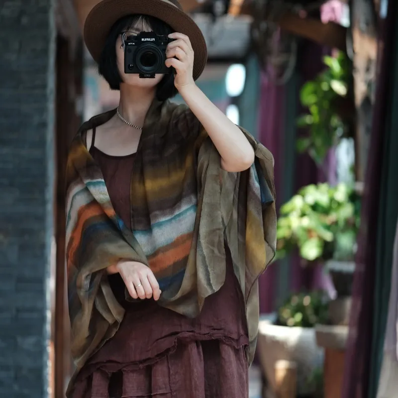 衣都精品- 2023新款復古條紋防曬圍巾披肩