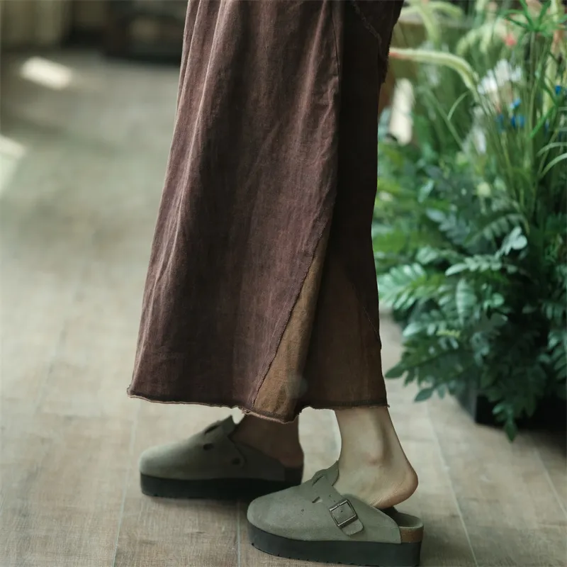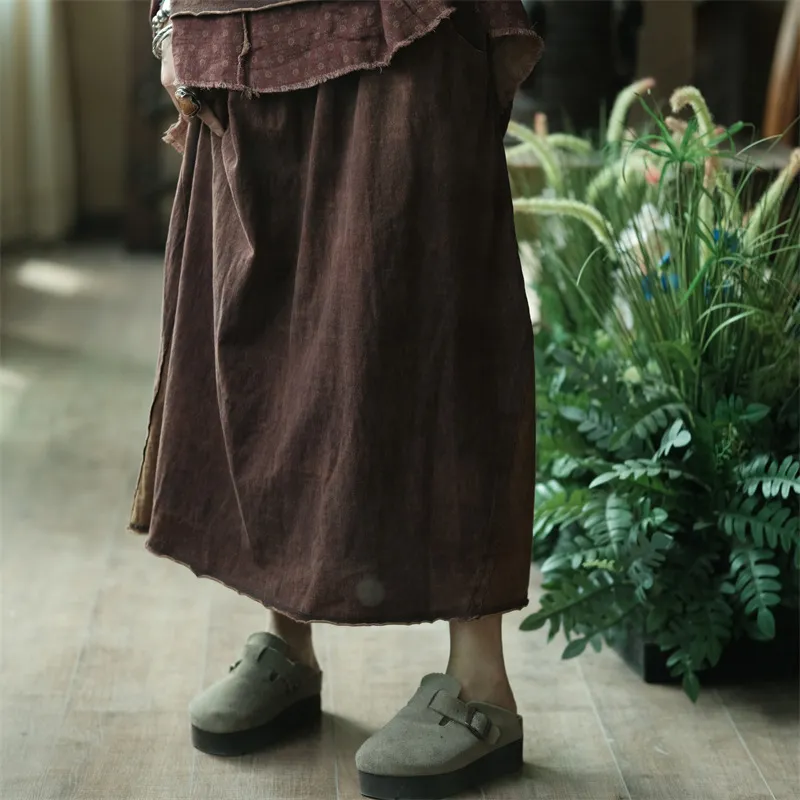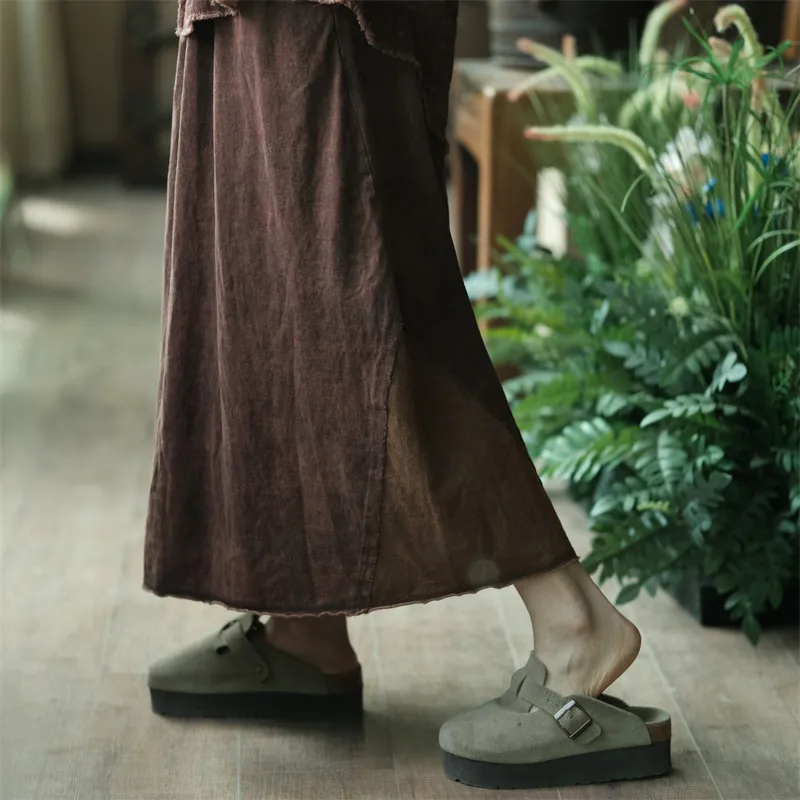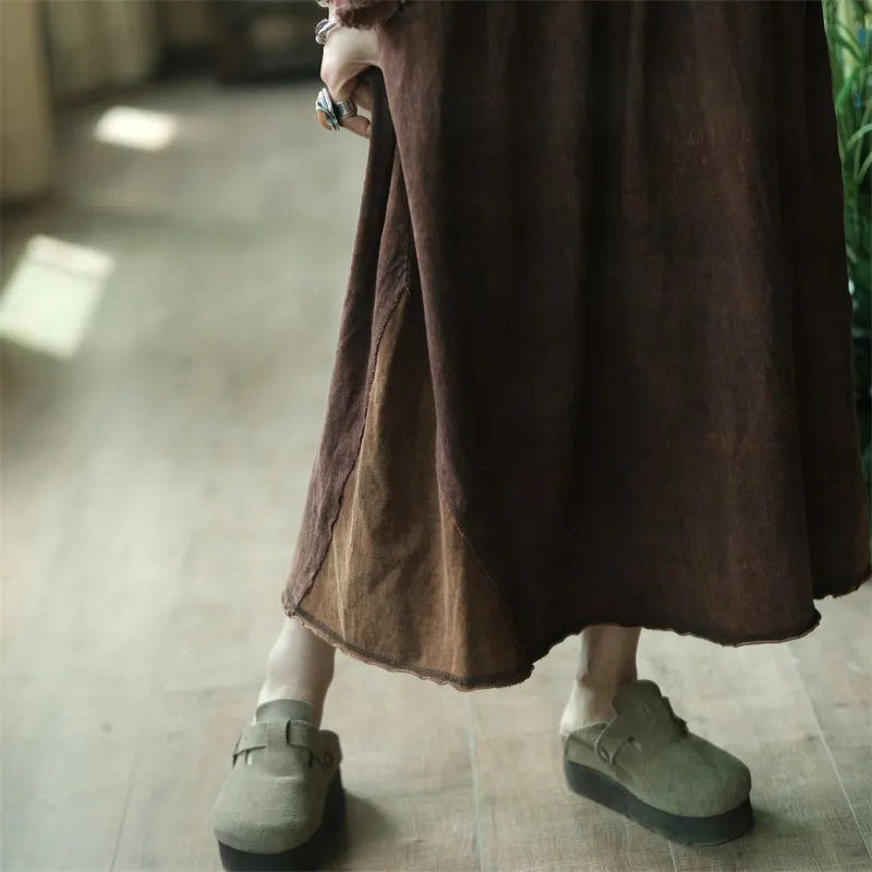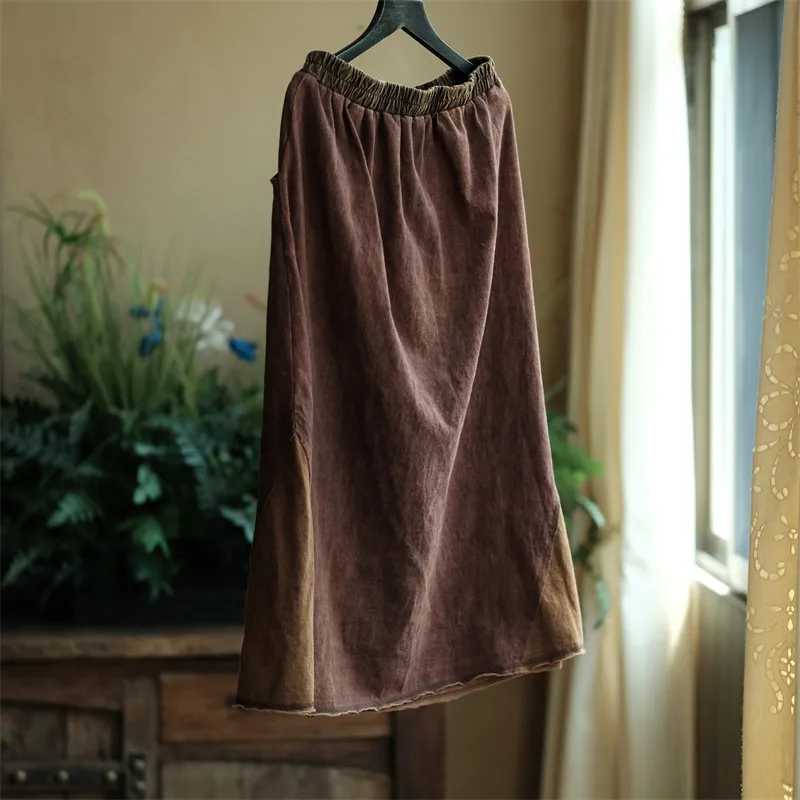 衣都精品- 2023新款復古做舊拼色鬆緊腰半身裙