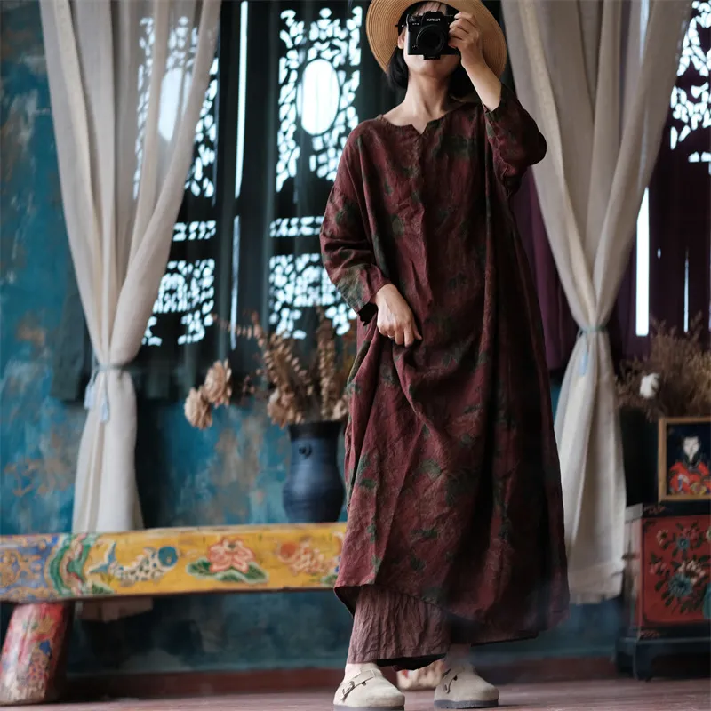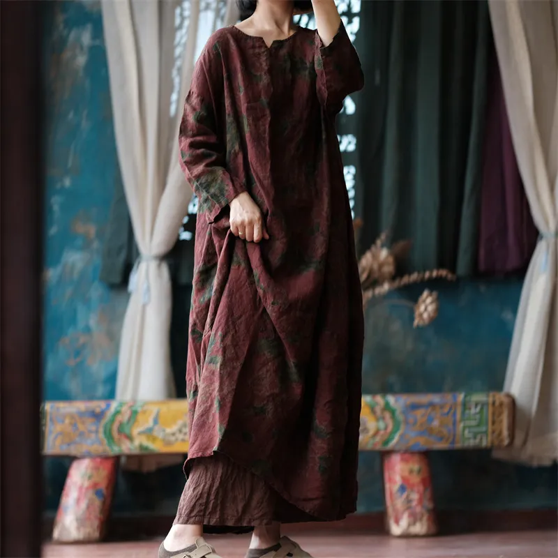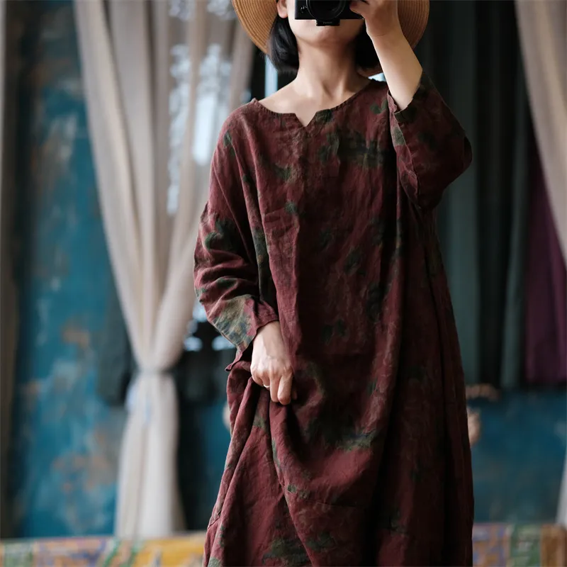 衣都精品- 2023新款復古水洗數位印花寬鬆連衣裙