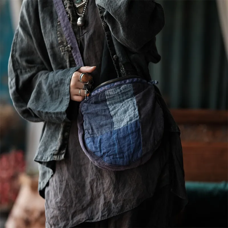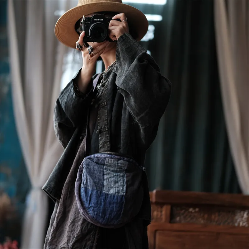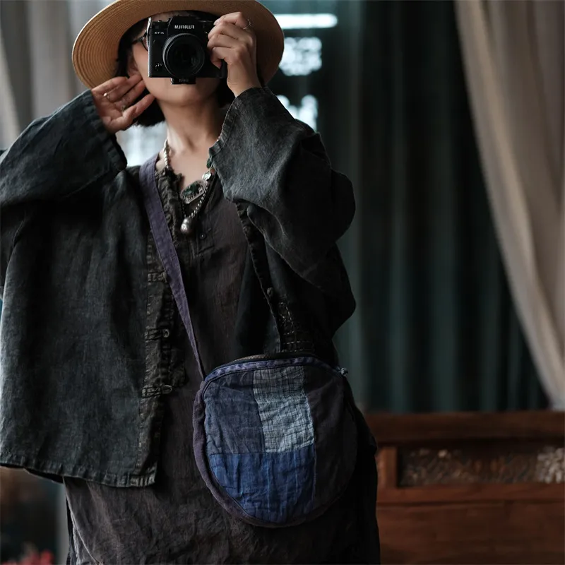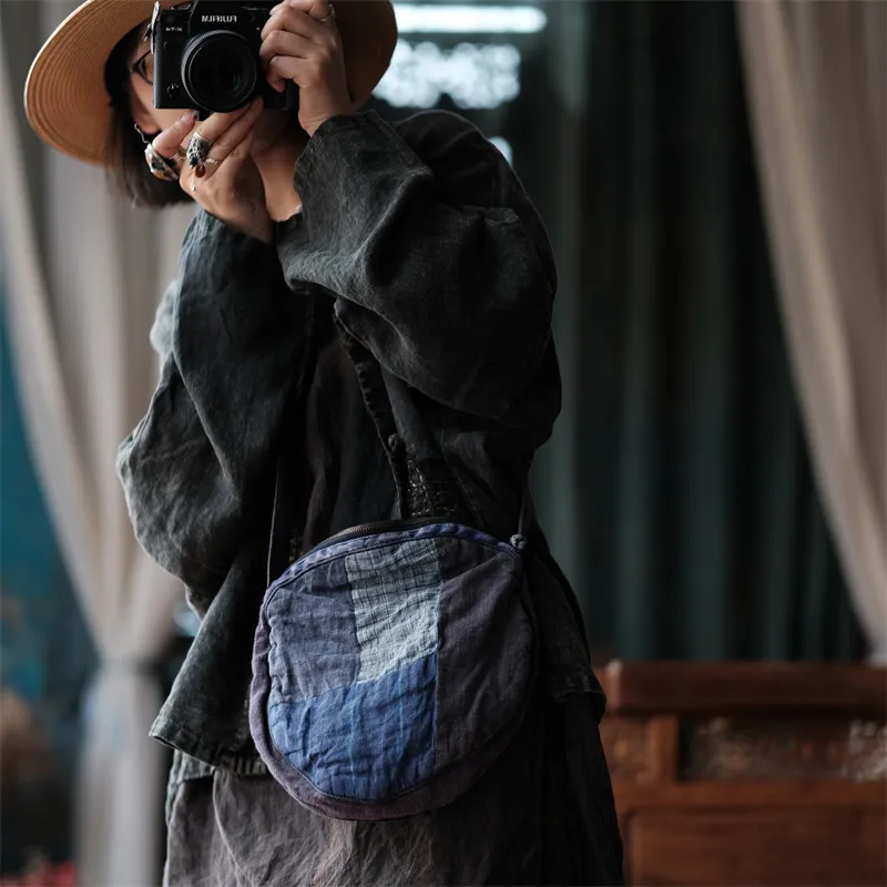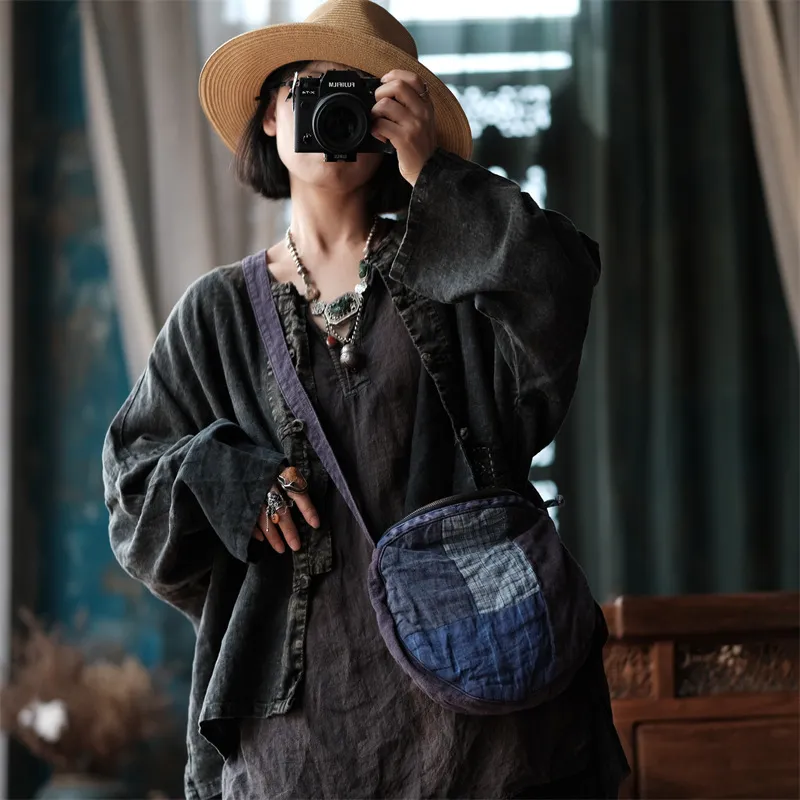 衣都精品- 2023新款復古百搭亞麻拼色斜跨包包