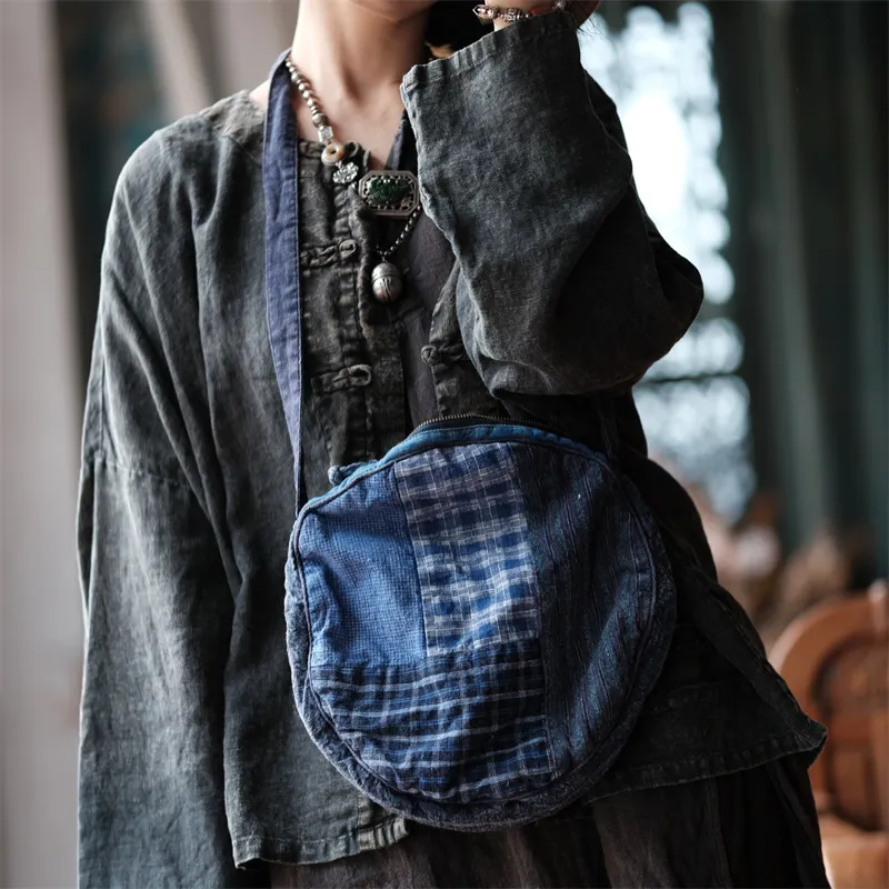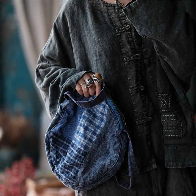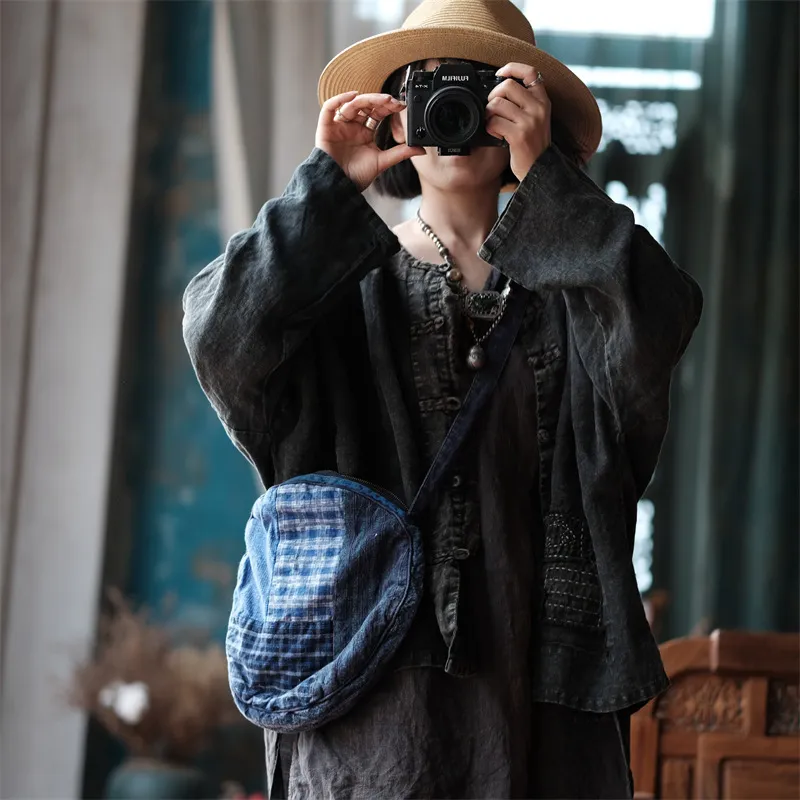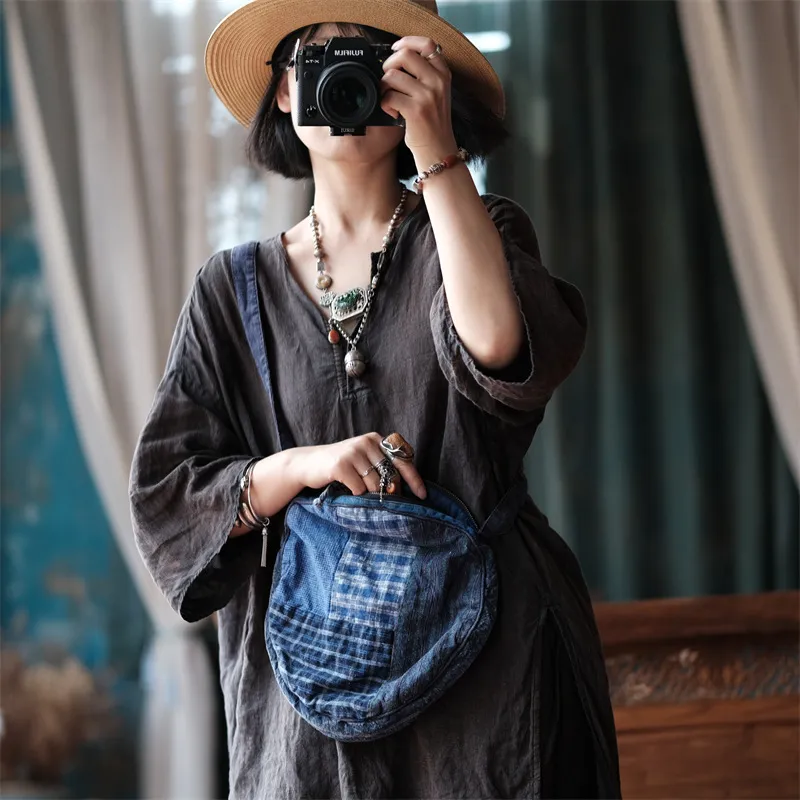 衣都精品- 2023新款復古百搭亞麻拼色斜跨包包
