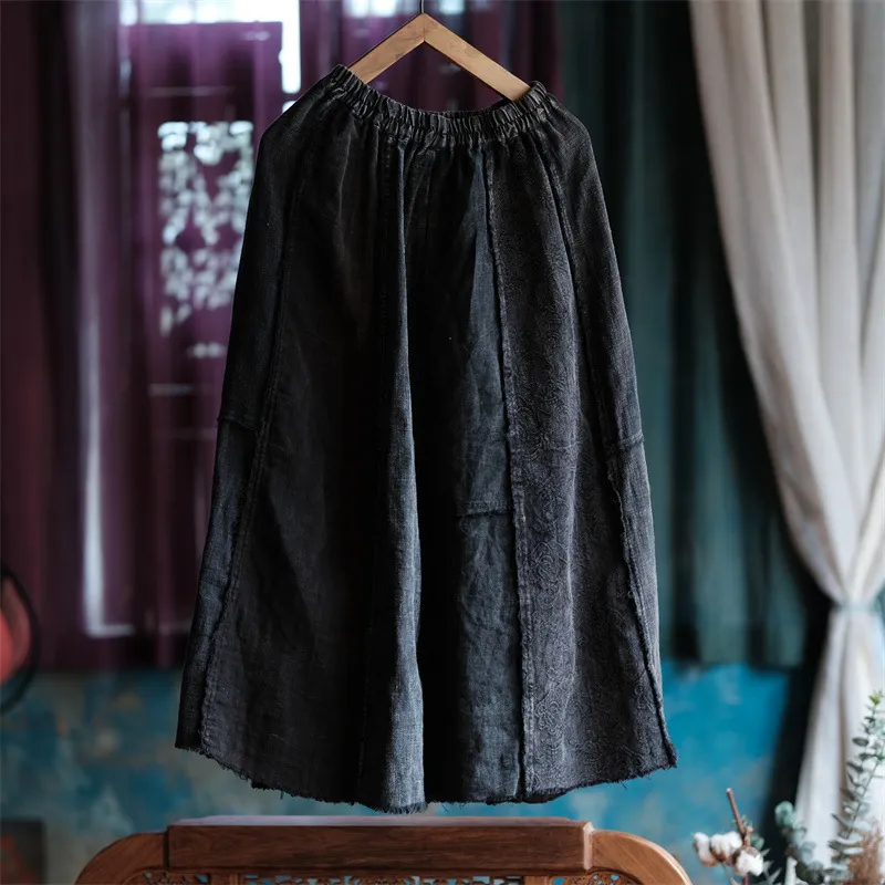 衣都精品- 2023新款深度雪花洗做舊毛邊鬆緊腰半身裙