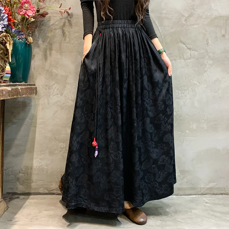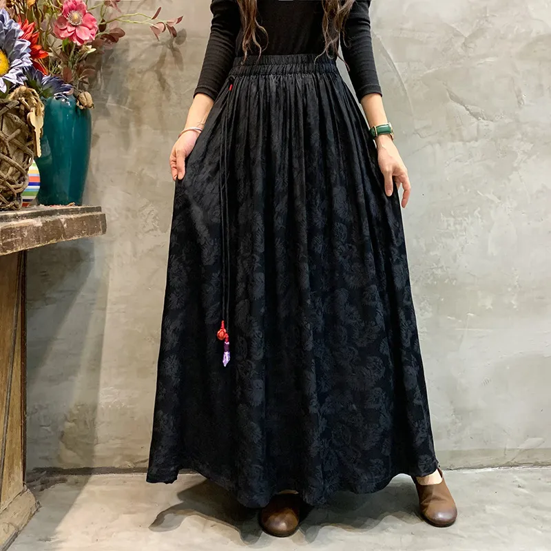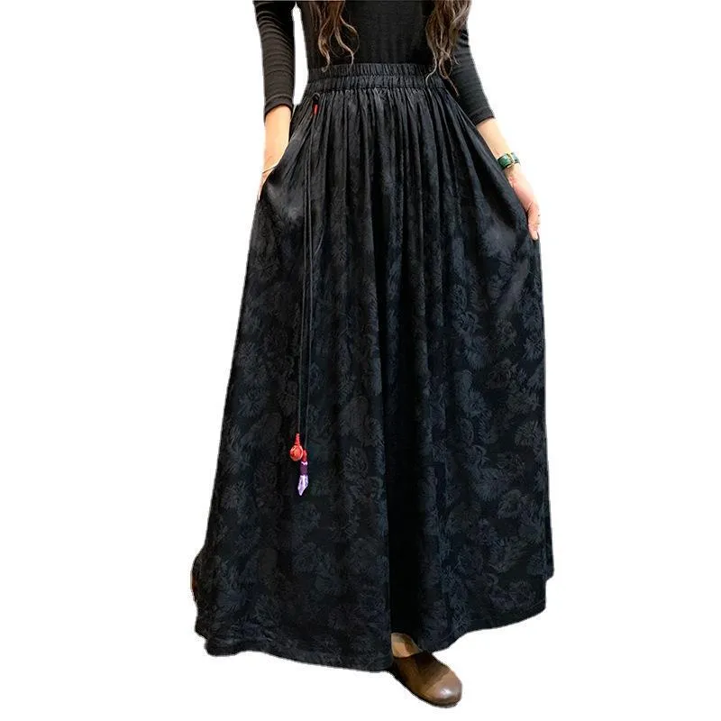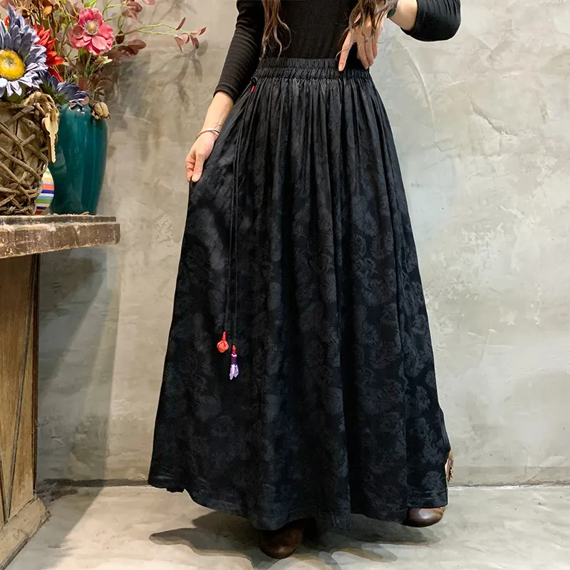 衣都精品- 2023新款復古流蘇緞面提花半身裙