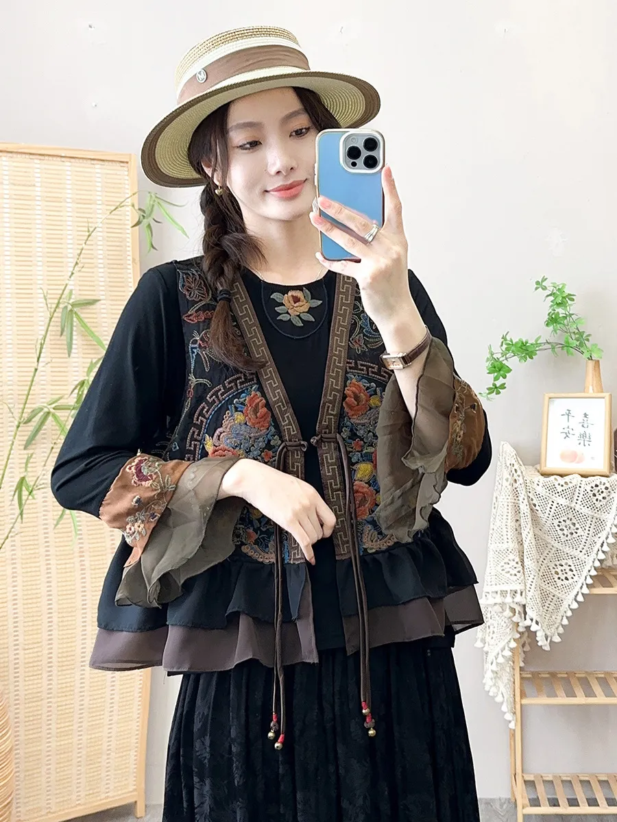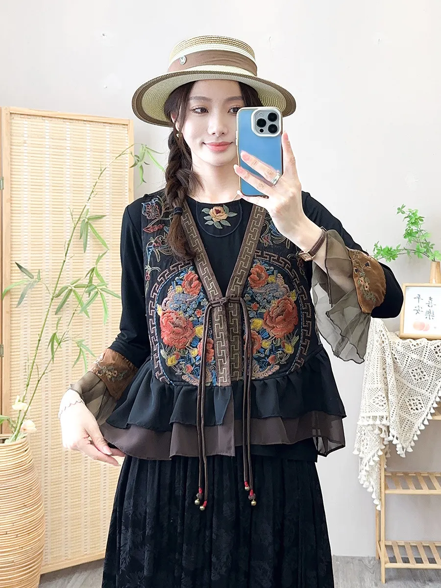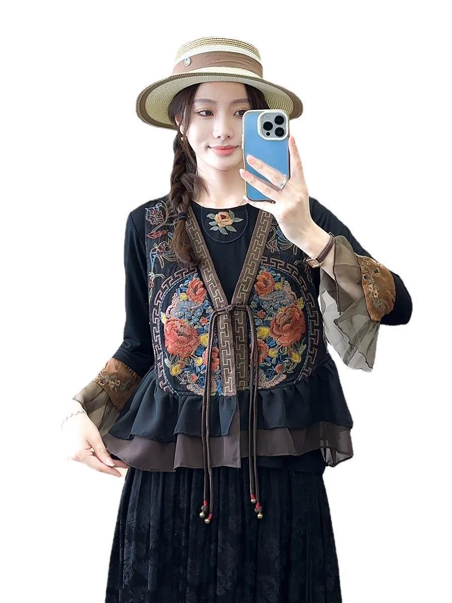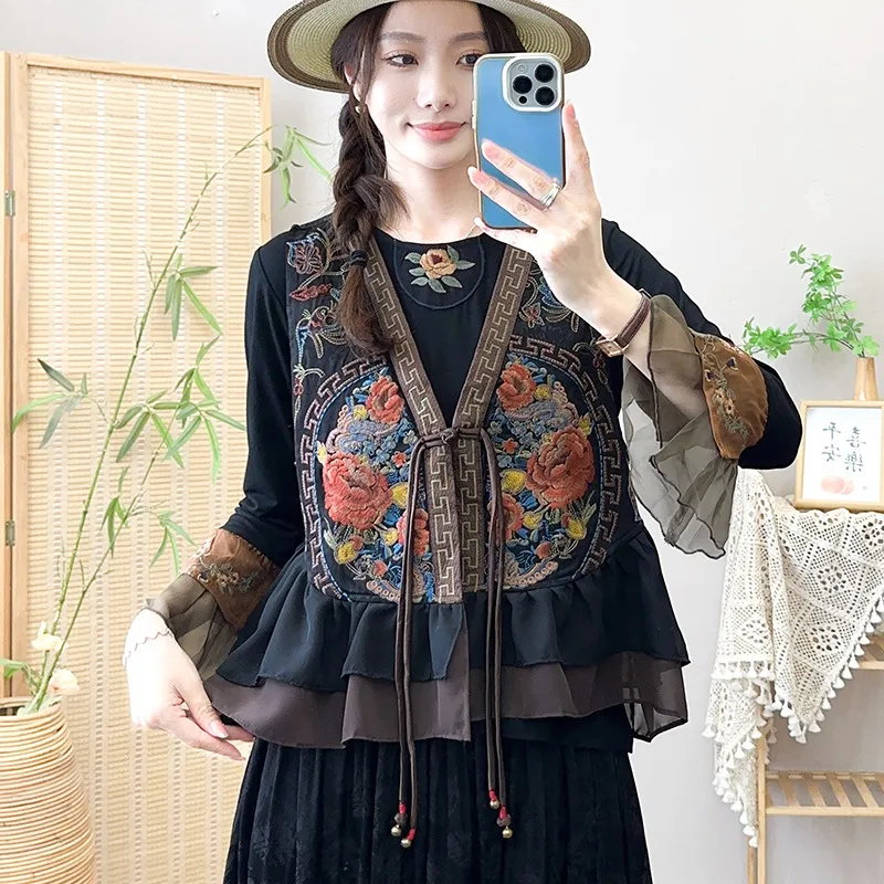 衣都精品- 2023新款民族風重工刺繡一粒盤扣馬甲外套