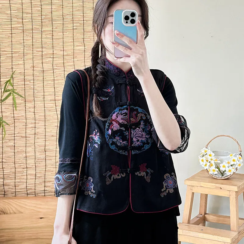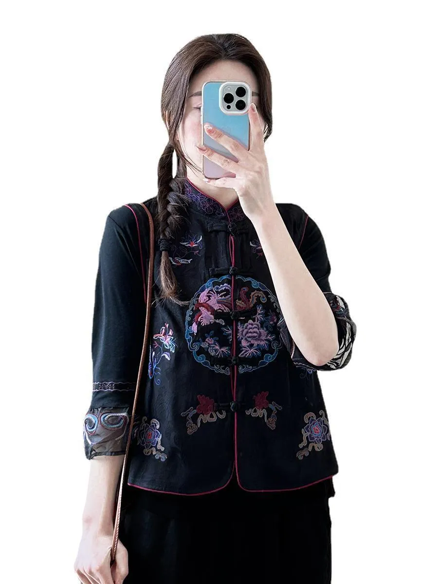 衣都精品- 2023新款民族風重工刺繡一粒盤扣馬甲外套