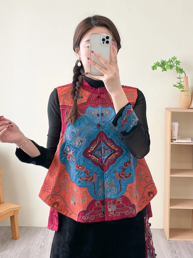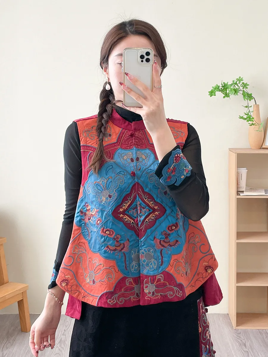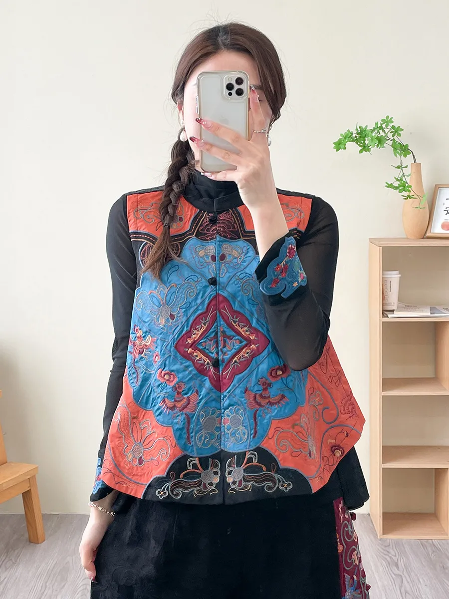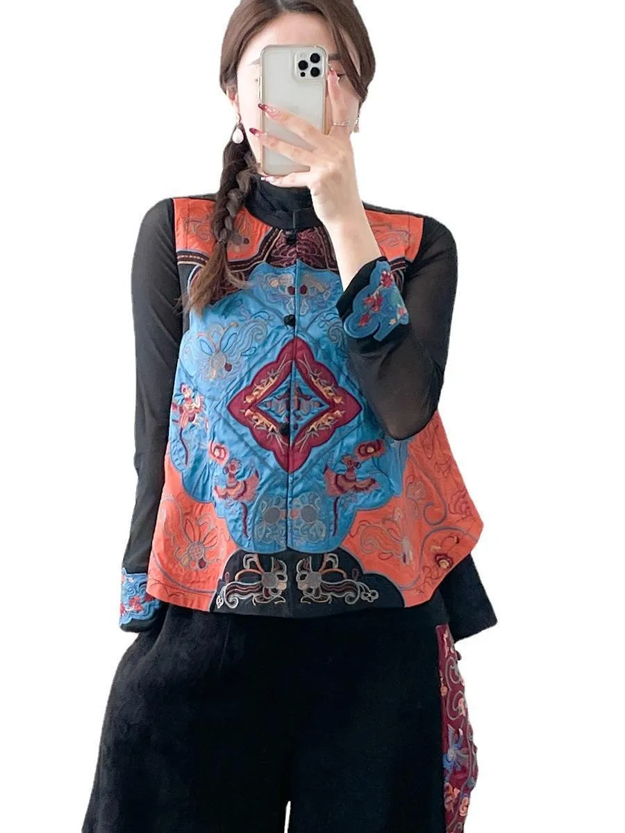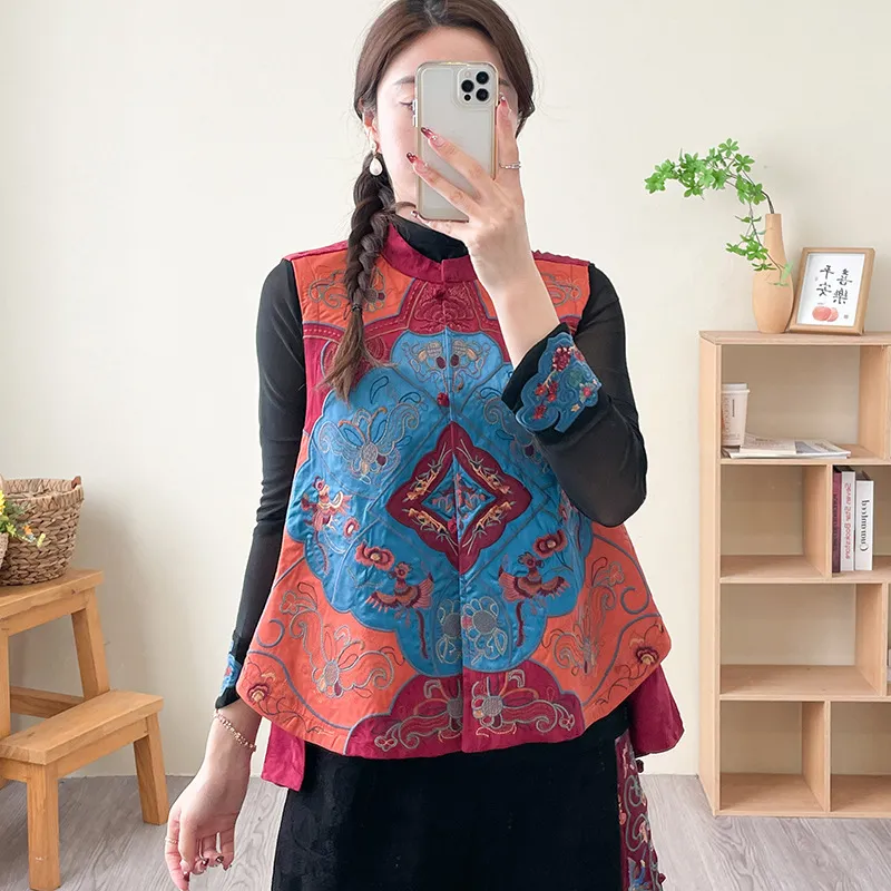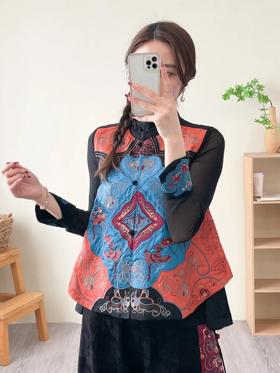 衣都精品- 2023新款民族風重工刺繡一粒盤扣馬甲外套