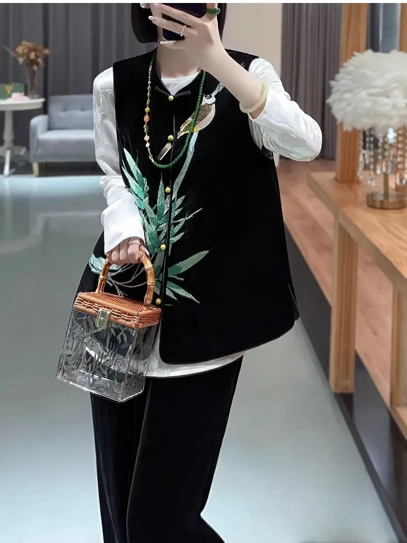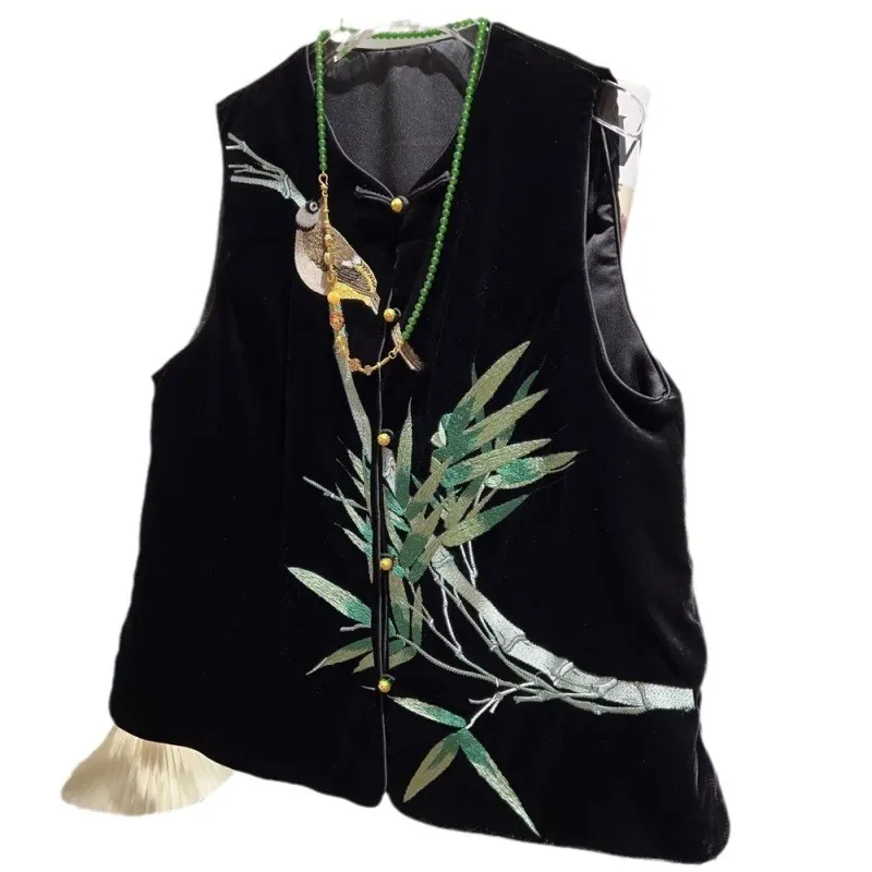 衣都精品- 2023新款中國風寬鬆無袖金絲絨夾棉外套