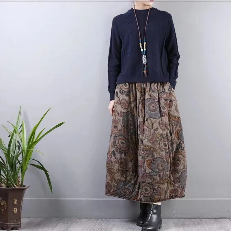 衣都精品- 2023新款復古鬆緊腰保暖加厚半身裙