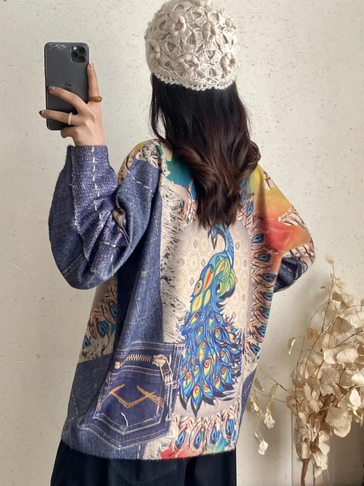 衣都精品- 2023新款復古文藝印花盤扣加絨外套