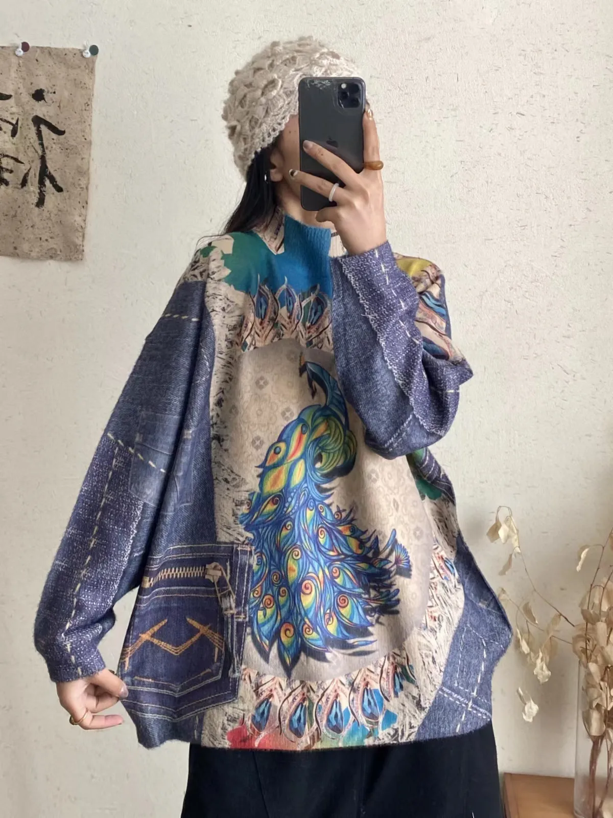 衣都精品- 2023新款半高領數位印花水貂絨上衣