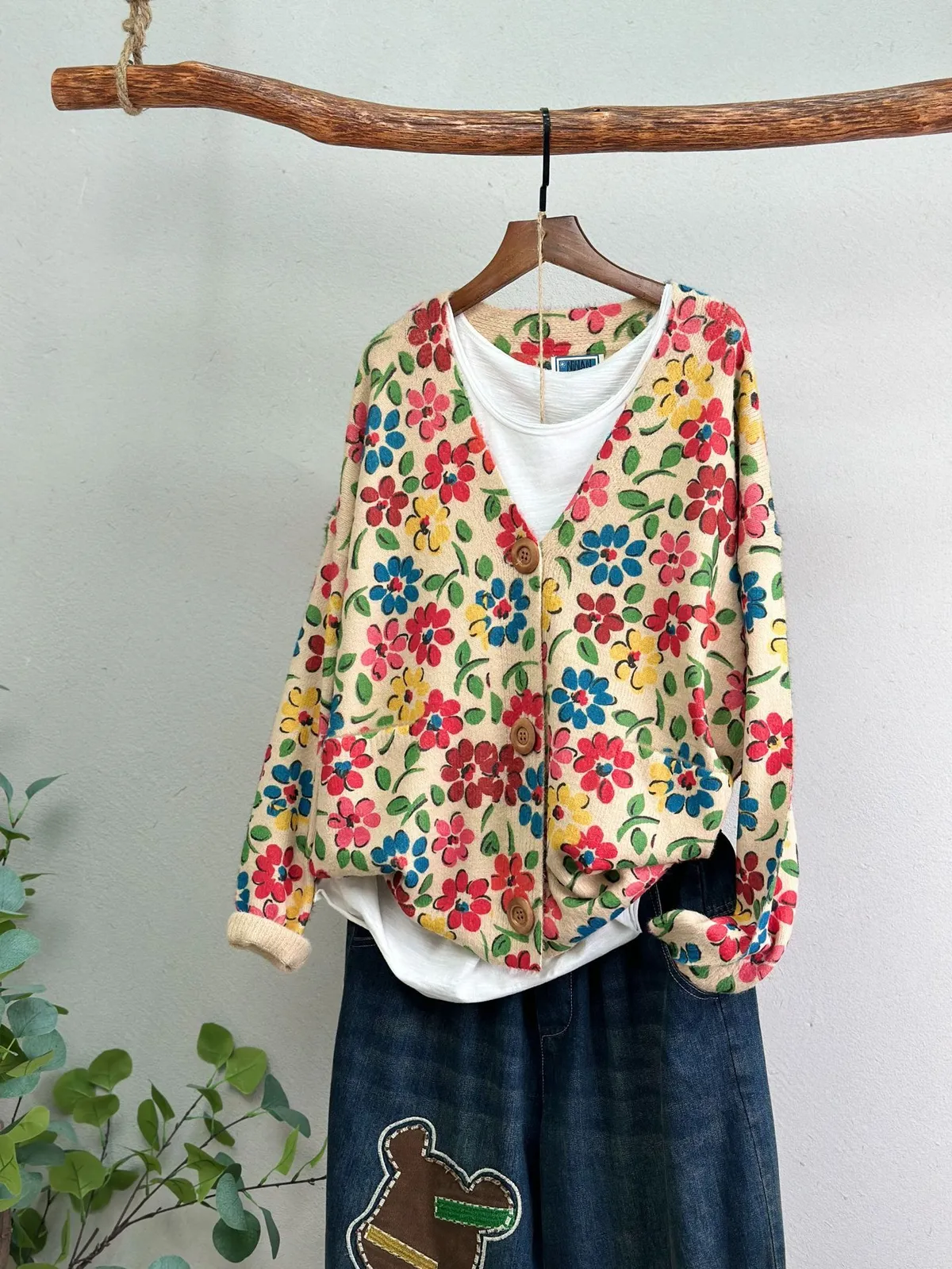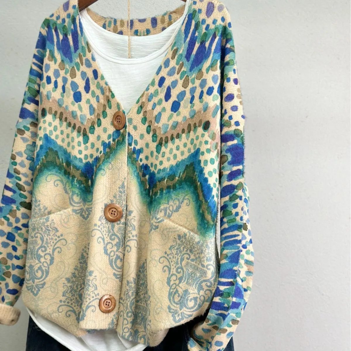 衣都精品- 2023新款民族風印花仿水貂絨毛衣外套