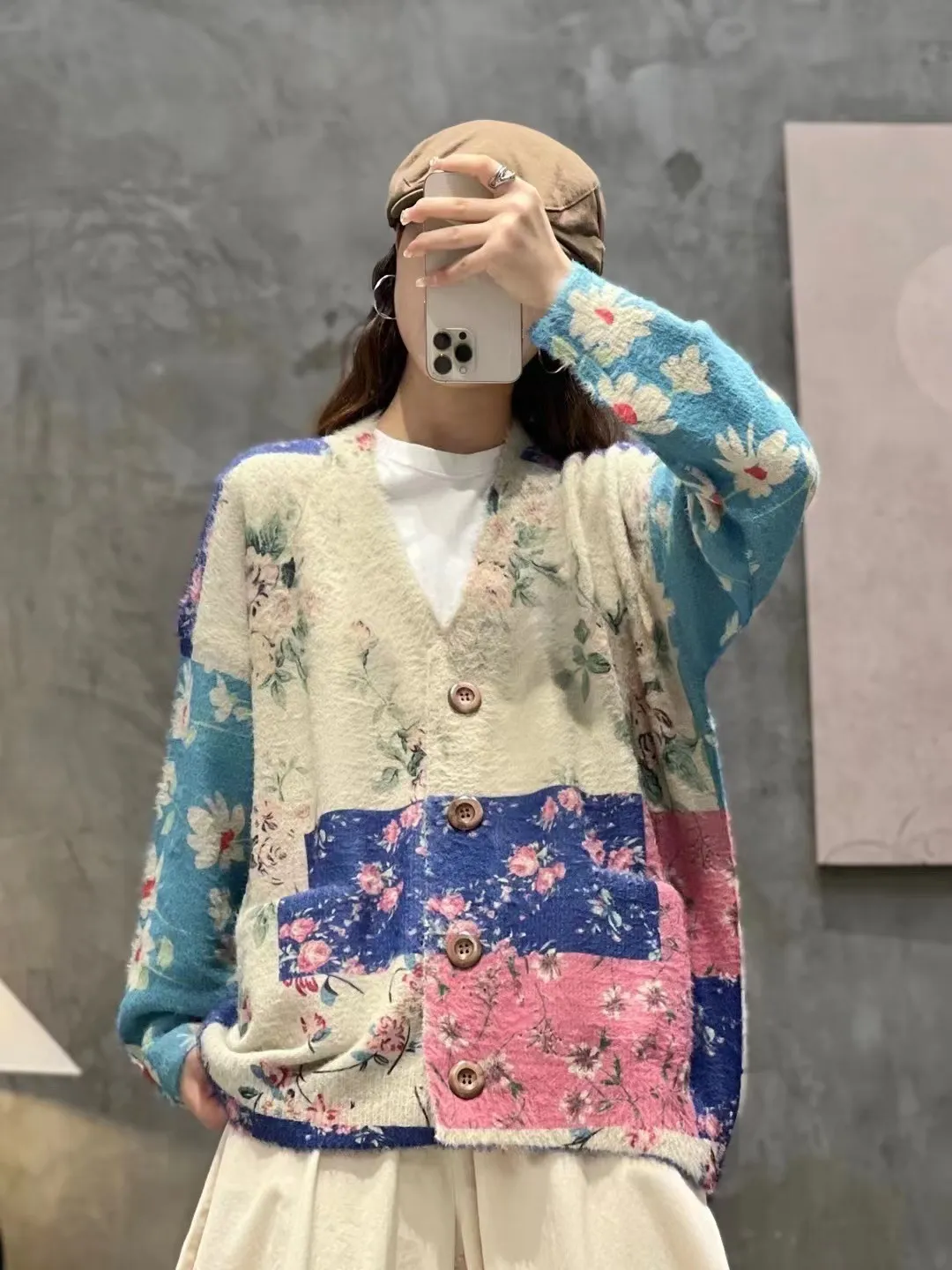 衣都精品- 2023新款民族風印花仿水貂絨毛衣外套