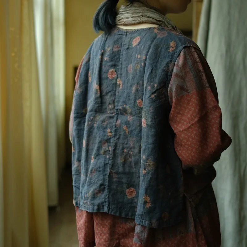 衣都精品- 2023新款復古做舊感雙層棉紗寬鬆對襟上衣