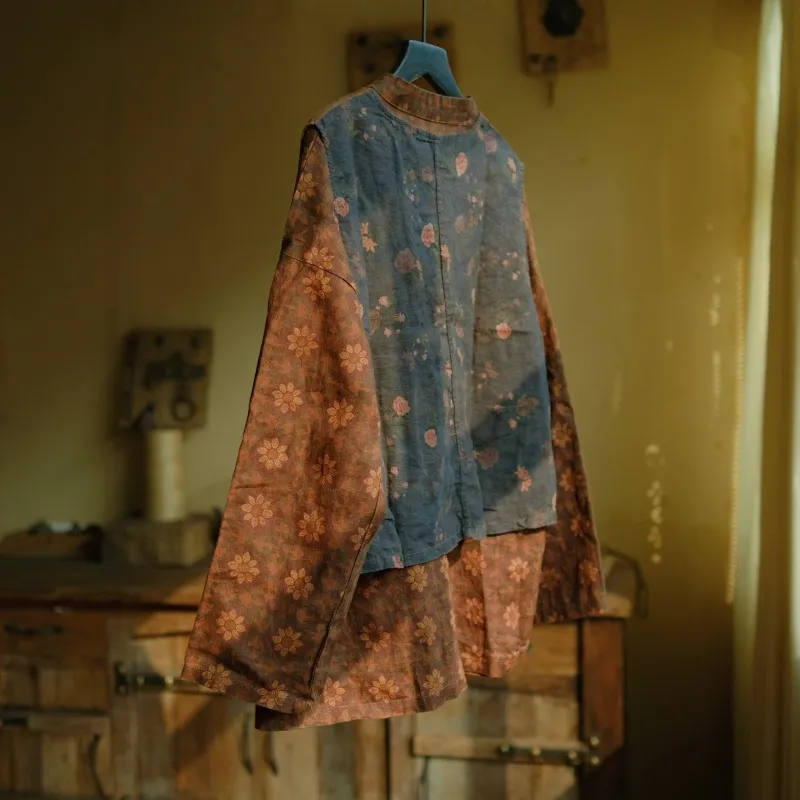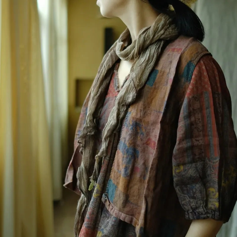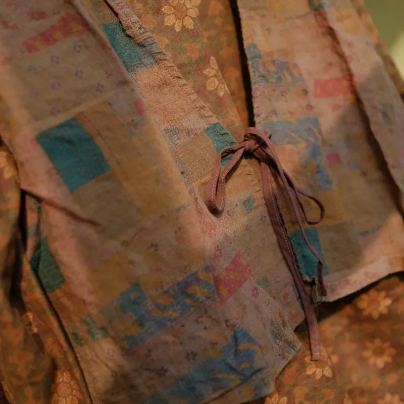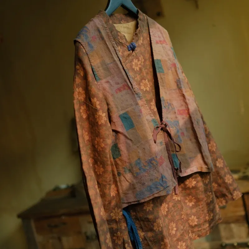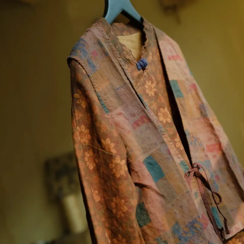 衣都精品- 2023新款水洗仿香雲紗印花工藝寬鬆繫帶上衣