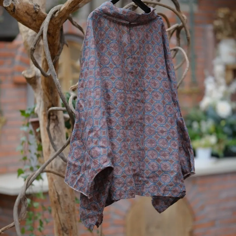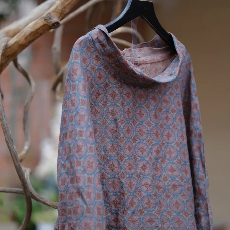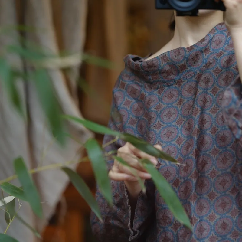 衣都精品- 2023新款水洗仿香雲紗印花工藝寬鬆繫帶上衣