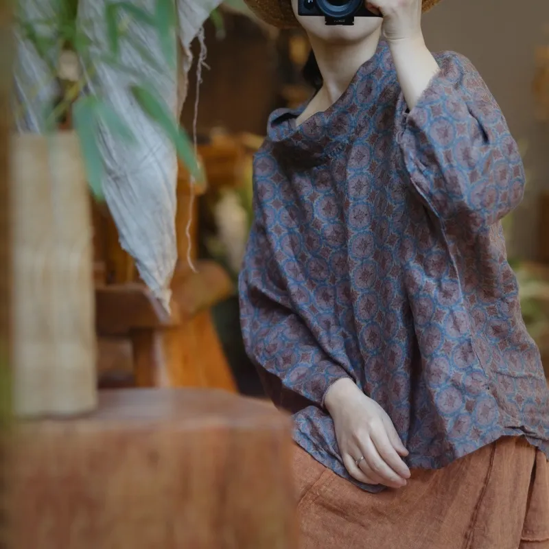 衣都精品- 2023新款自由盆領數位印花寬鬆上衣