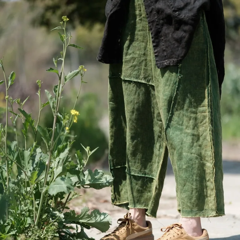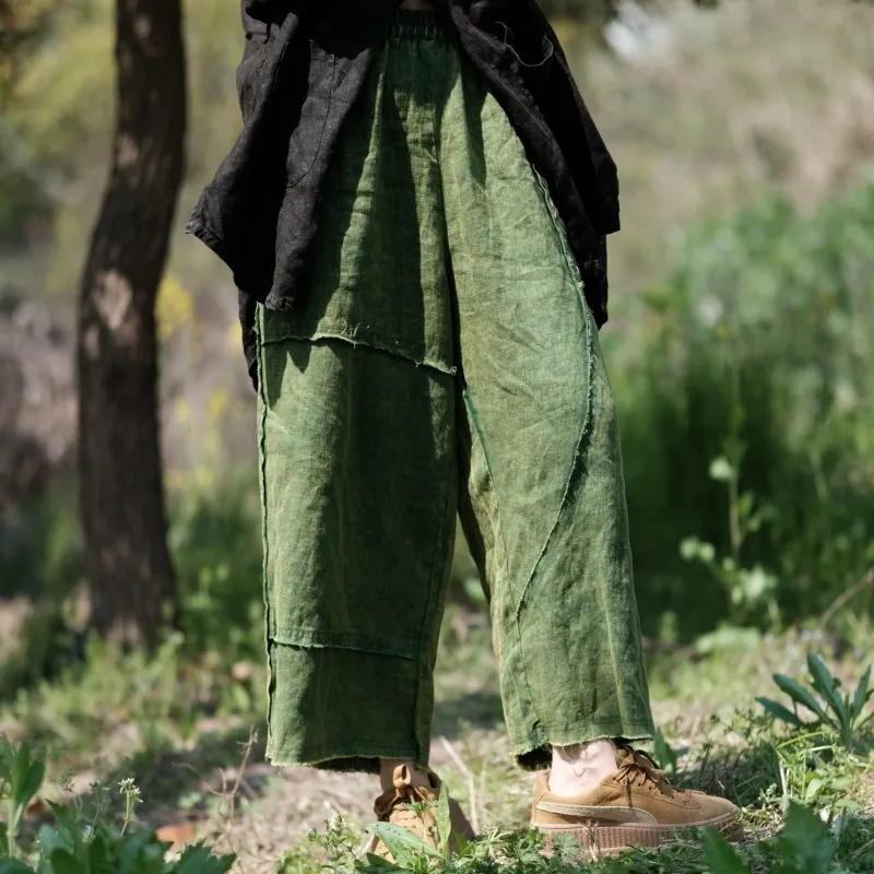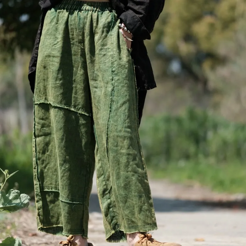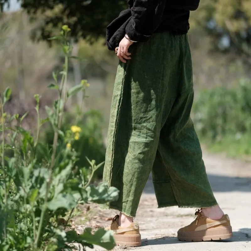 衣都精品- 2023新款做舊雪花洗純亞麻寬鬆毛邊九分褲
