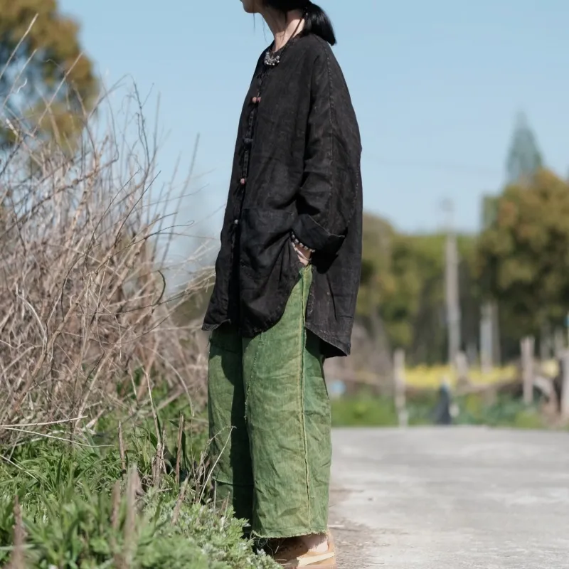 衣都精品- 2023新款復古做舊感雙層棉紗寬鬆對襟上衣