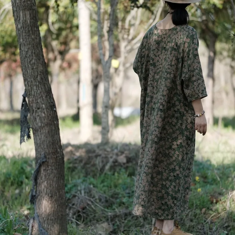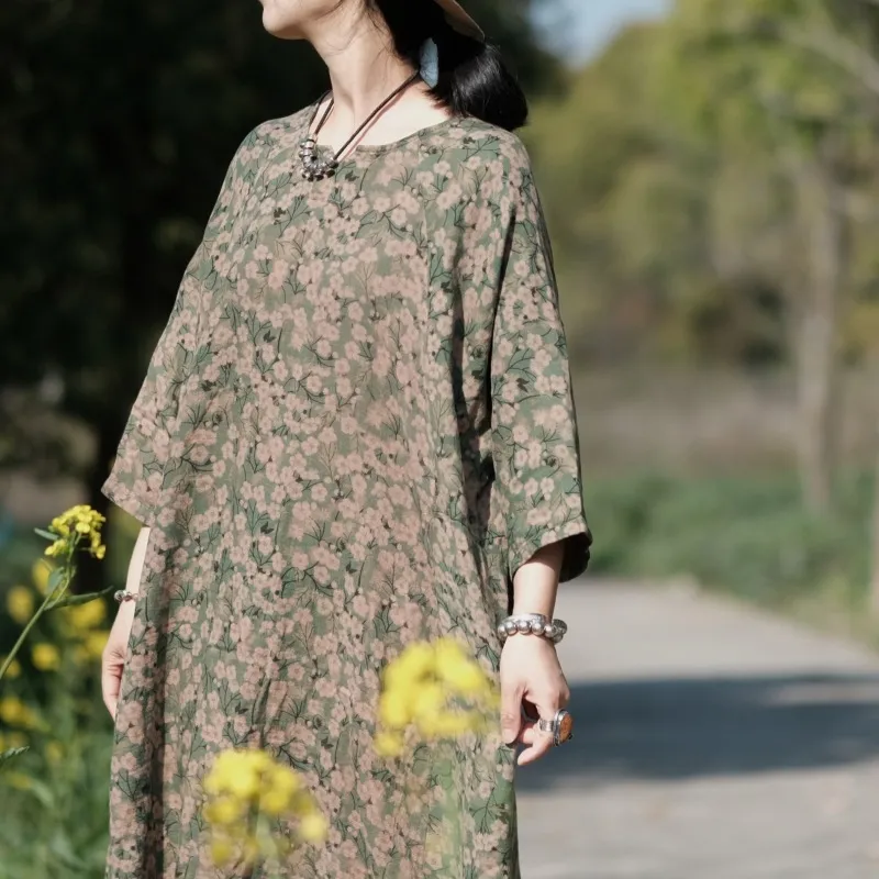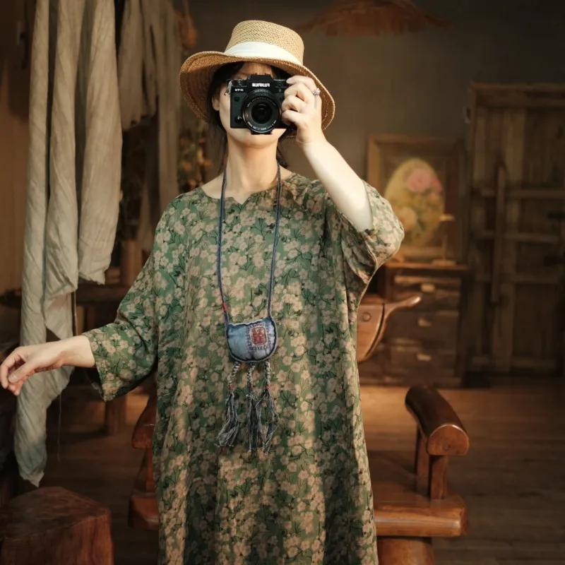衣都精品- 2023新款文藝復古做舊感寬鬆印花連衣裙